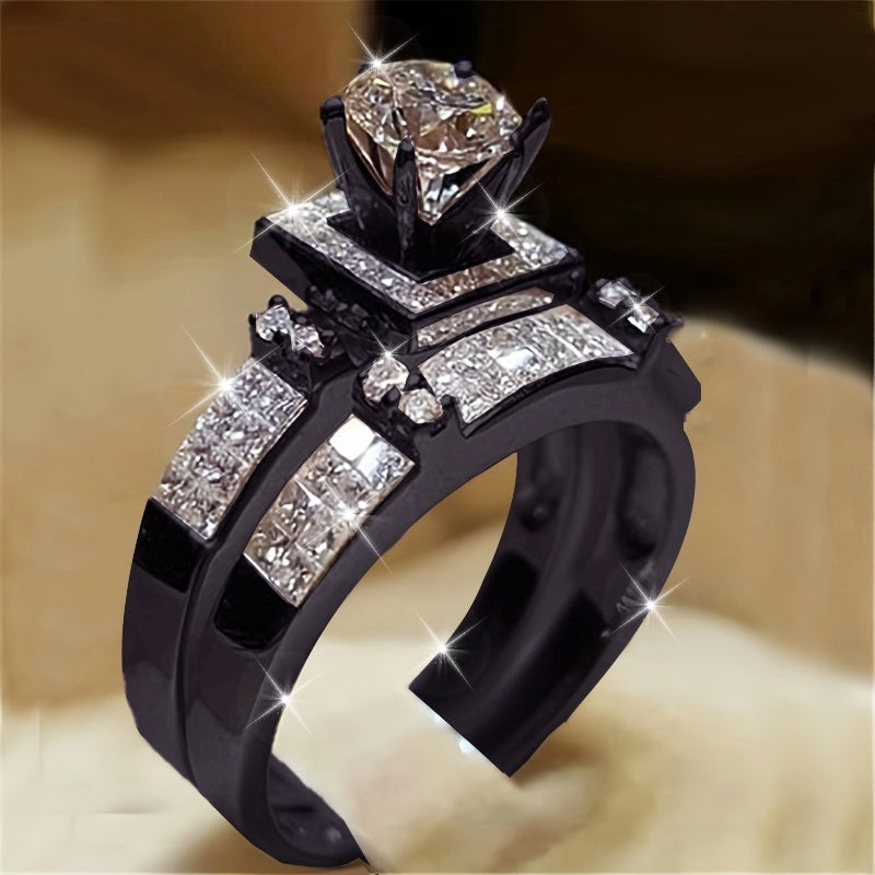 2 pieces/ set Sparkling Six Claw Inlaid Cubic Zirconia Ring for Women