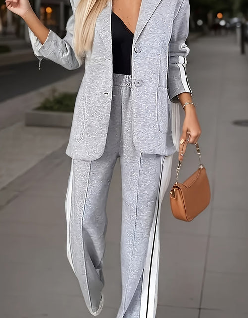 2025 New Elegant Women's Blazer & Pants Set - Long Sleeve, Lapel Collar, with Side Stripe Detail Very Relaxing and Fashionable