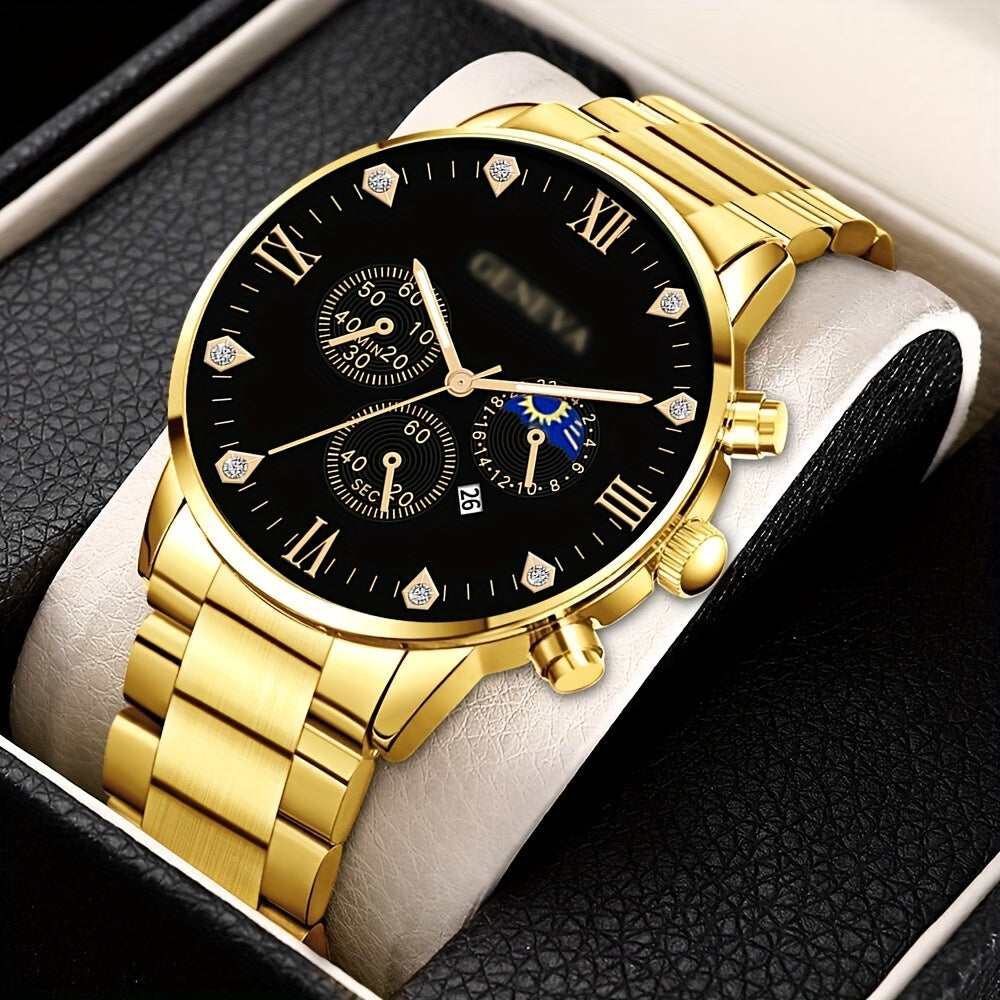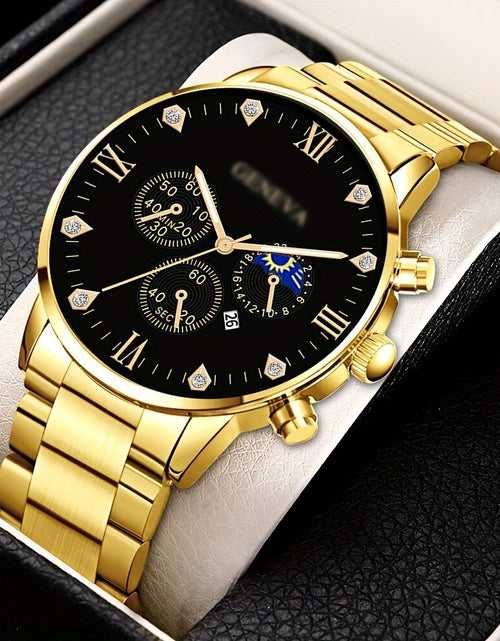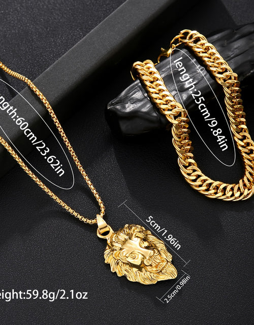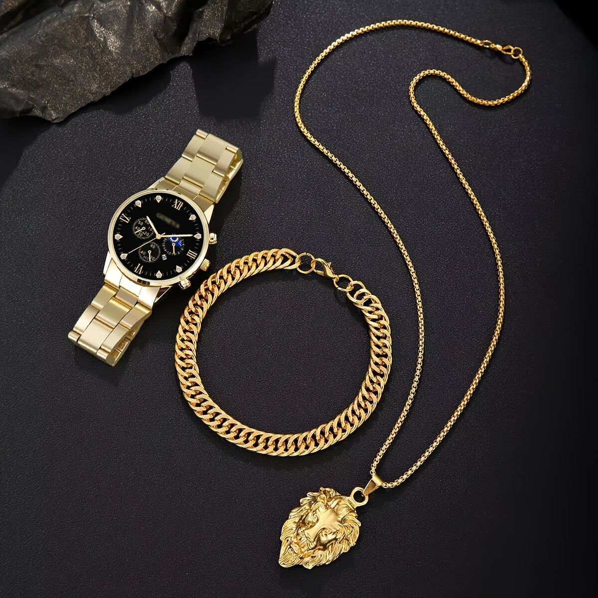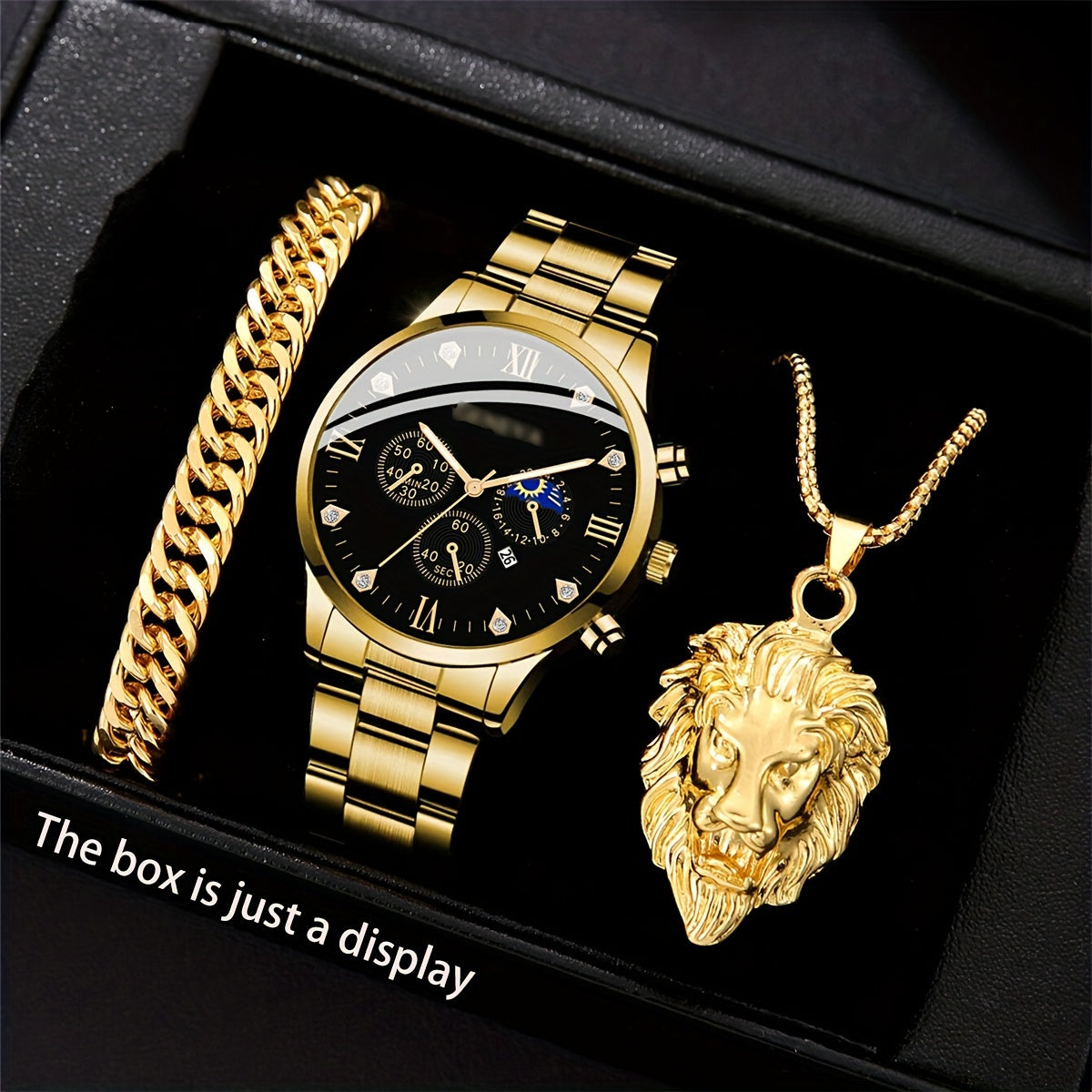 3/ Piece Set Men Fashion Alloy Watch, Alloy Bracelet And Lion Head Alloy Necklace Are Ideal Gifts for Men.