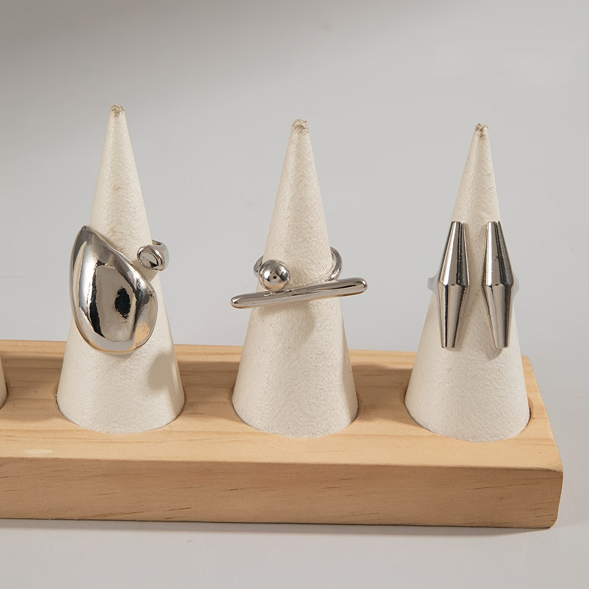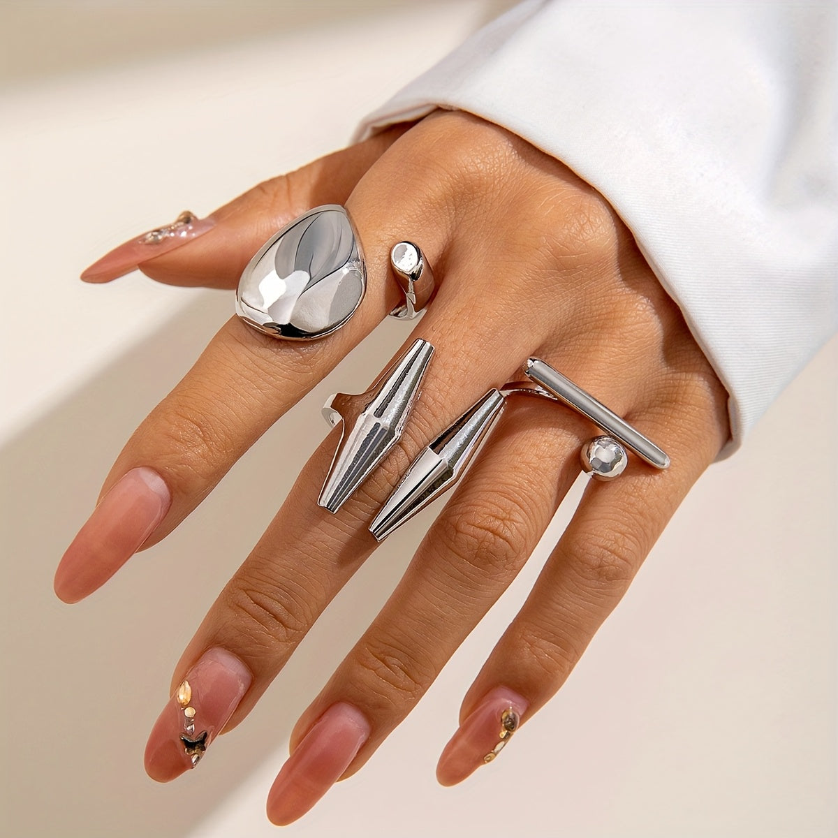 A Set of Three Stylish And Unique Metallic Irregular Liquid Shine Rings