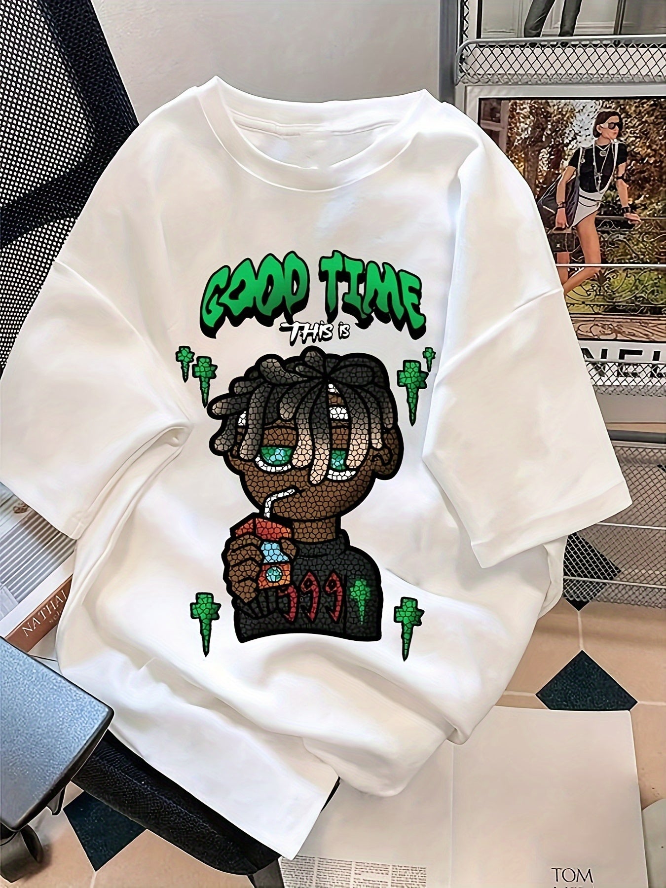 Casual Oversized T-Shirt with Anime Print - Soft Polyester Blend. Stretchy Material