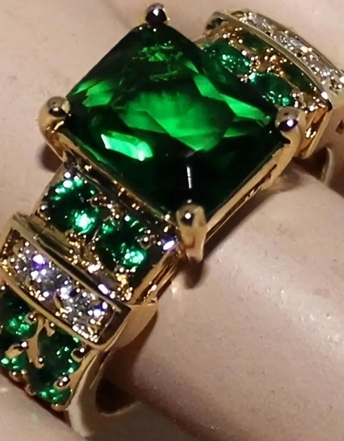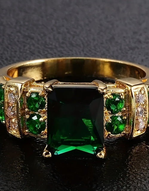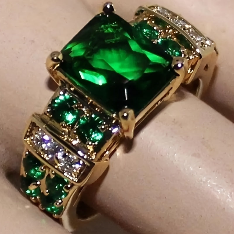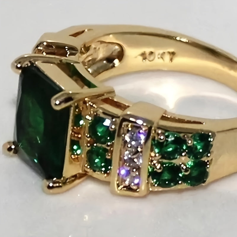 Elegant Golden-Tone Green Synthetic Zirconia Ring for Women – Retro Bohemian Style, Classic Versatile Jewelry Accessory with Emerald & Teal Gemstones, Perfect for Daily Wear or Gifting