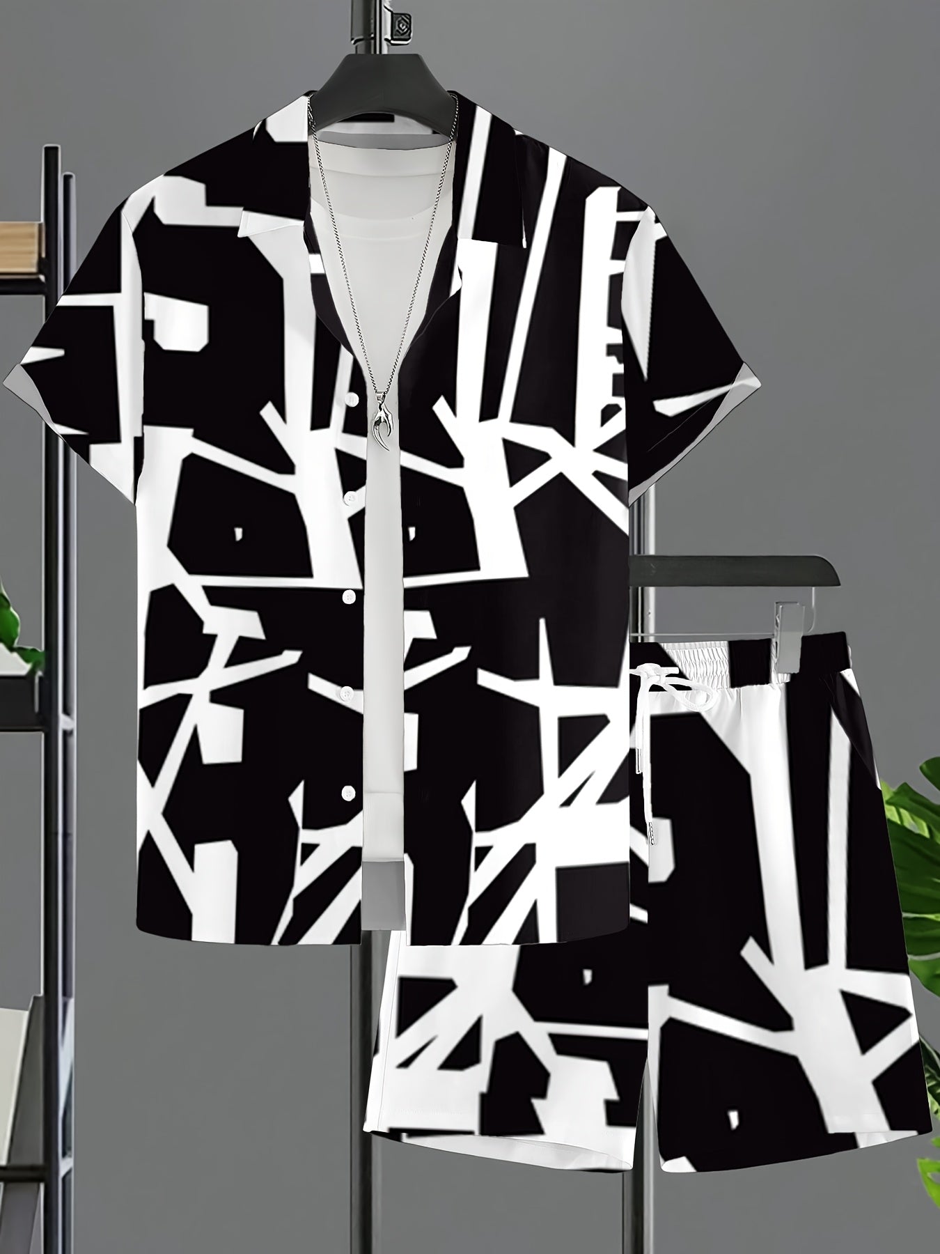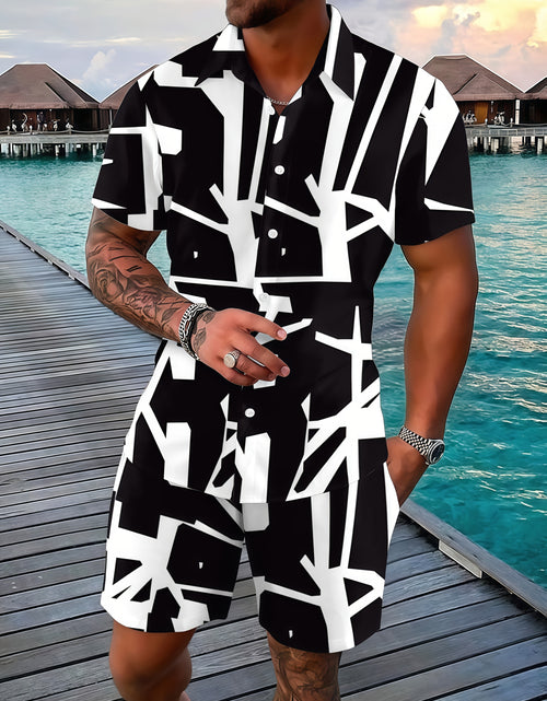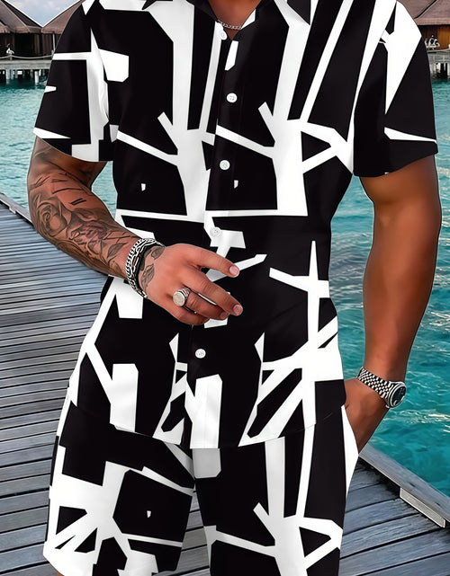Fashionable And Comfortable Men Beach Vacation Printed Short-sleeved Short Pants Set