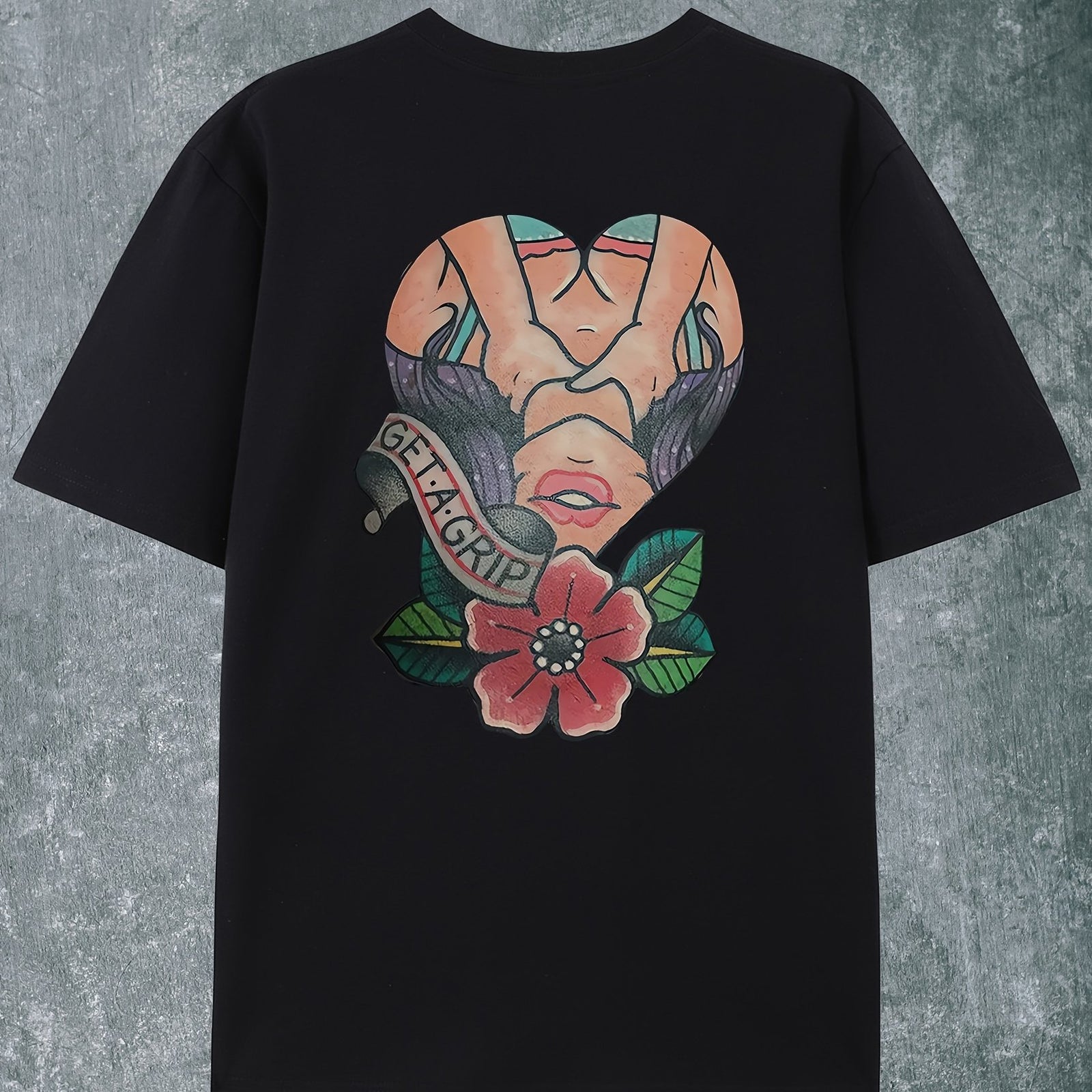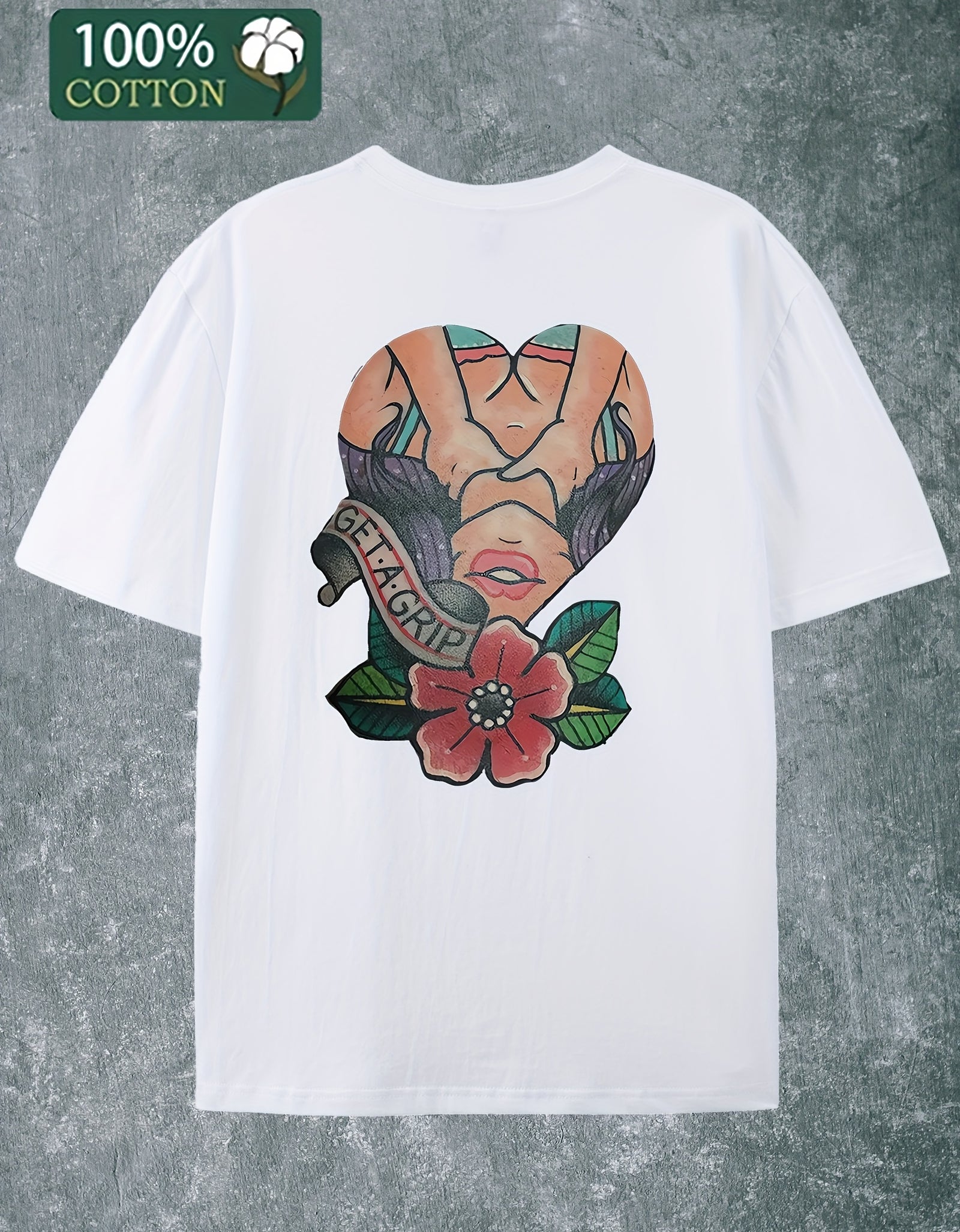 Get A Grip, Street Style, (Cotton T-shirt) Men Round Neck Short-sleeved Cotton Casual T-shirt, Loose Style, Versatile,