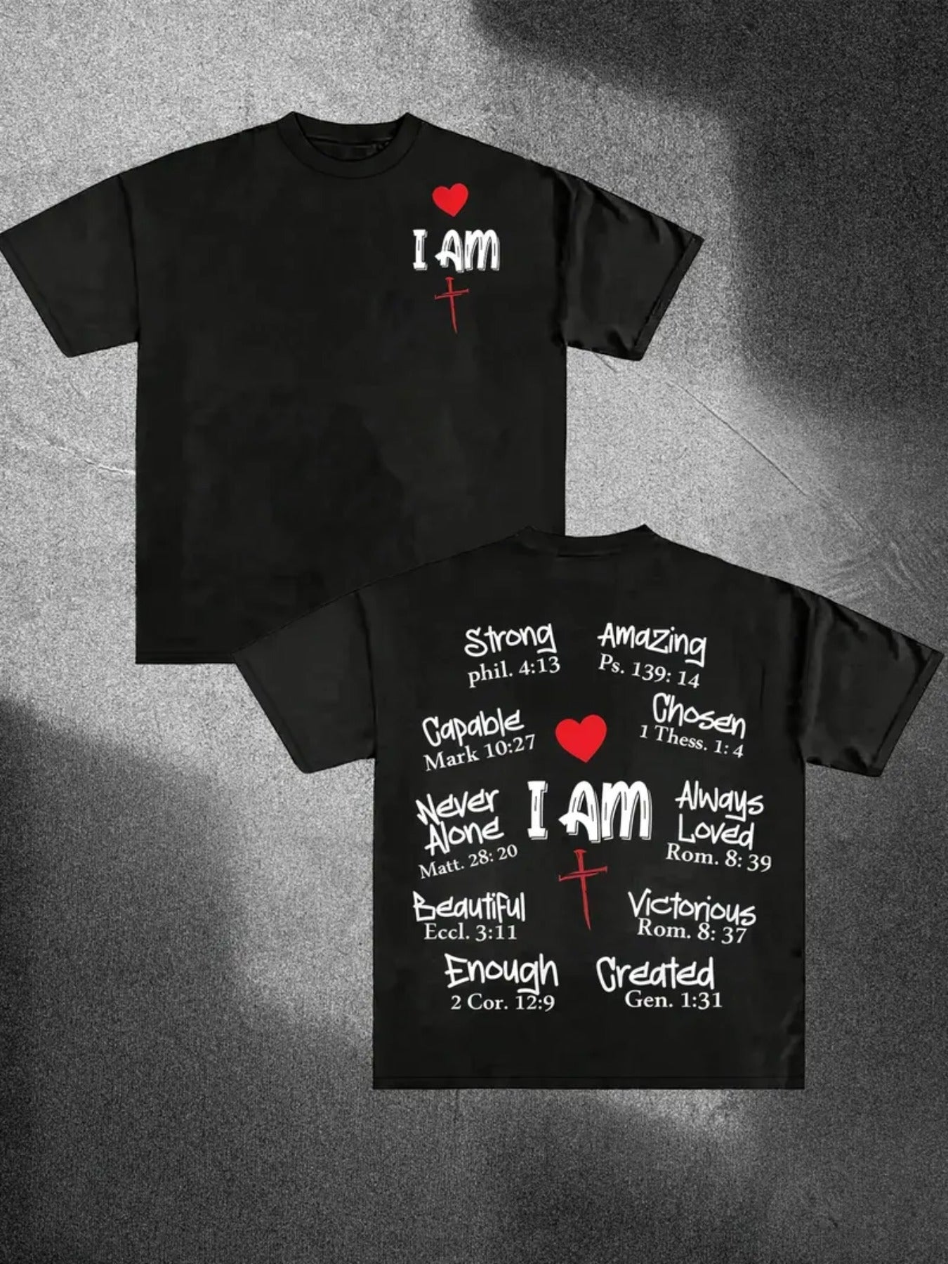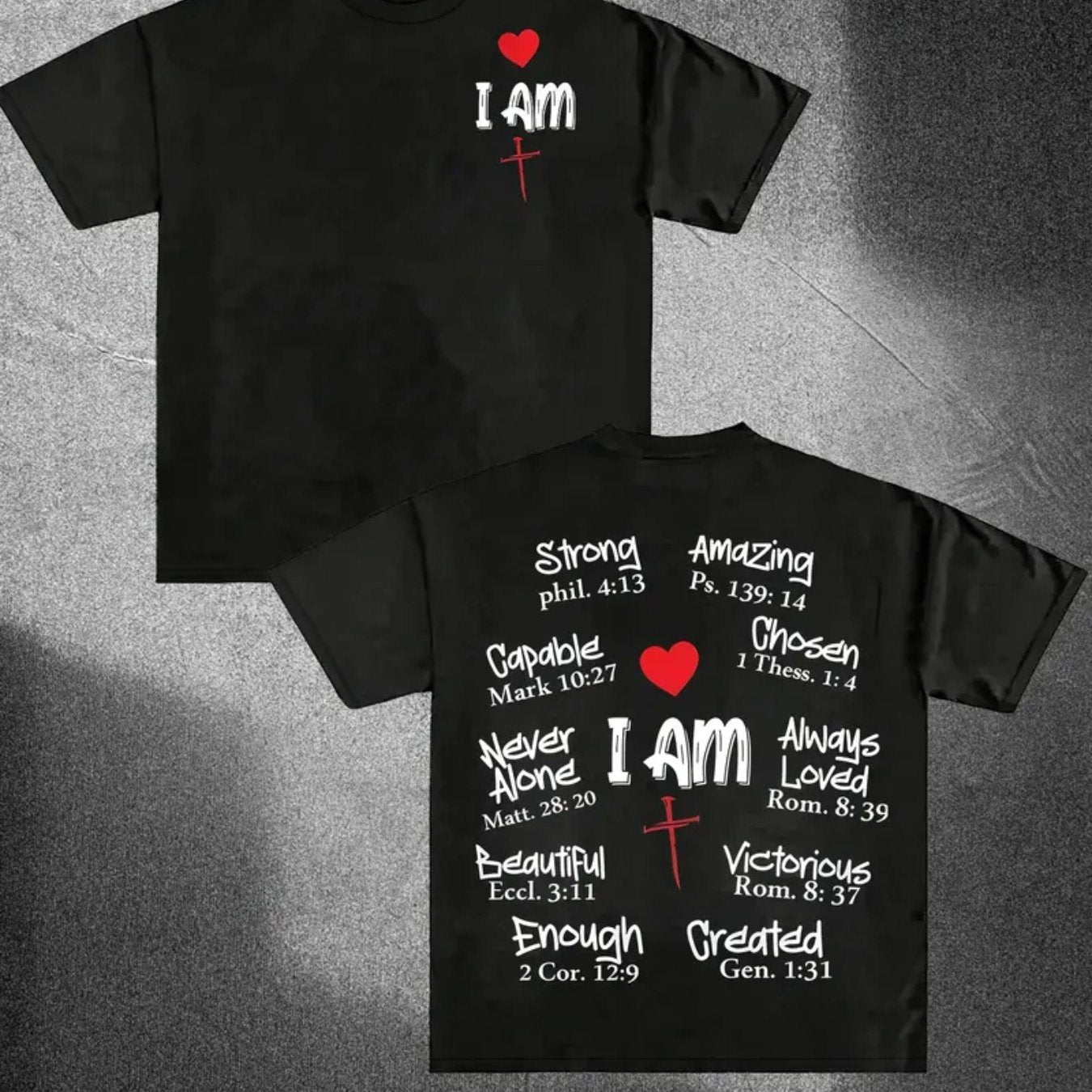 I AM Positive Energy Double-Sided Printing Men 100% Pure Cotton T-Shirt, a Comfortable, Casual, Versatile, And Fashionable Round Neck Short Sleeved Essential for Men,
