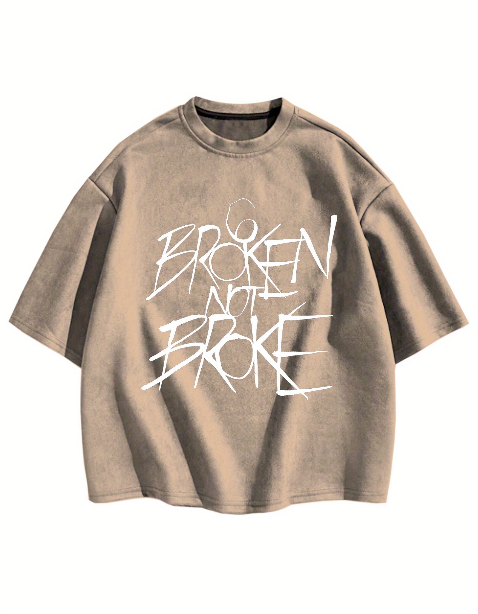 Loose Fit Short Sleeve T-Shirt - Retro Abstract Face & Geometric Print, Beige Unisex Casual Summer Top, Machine Washable, Bold Graphic Tee | Soft Texture Tee
