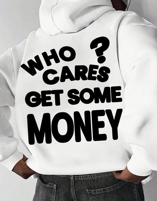 Men Casual Street Style Hoodie - "Who Cares? Get Some Money" Graphic, Loose Fit, Long Sleeve, Polyester, Machine Washable - Perfect for Spring/ Fall, Oversized Hoodie