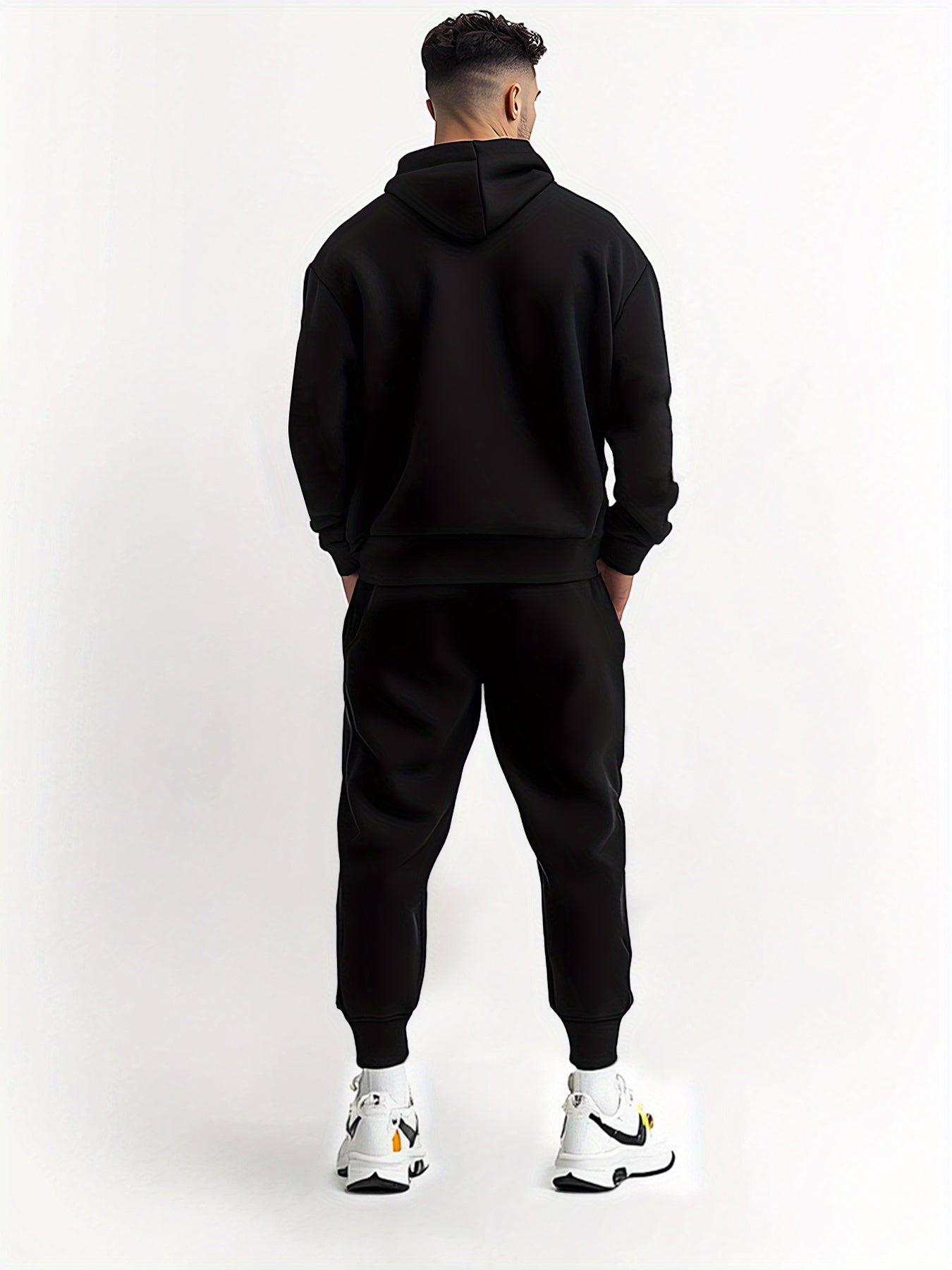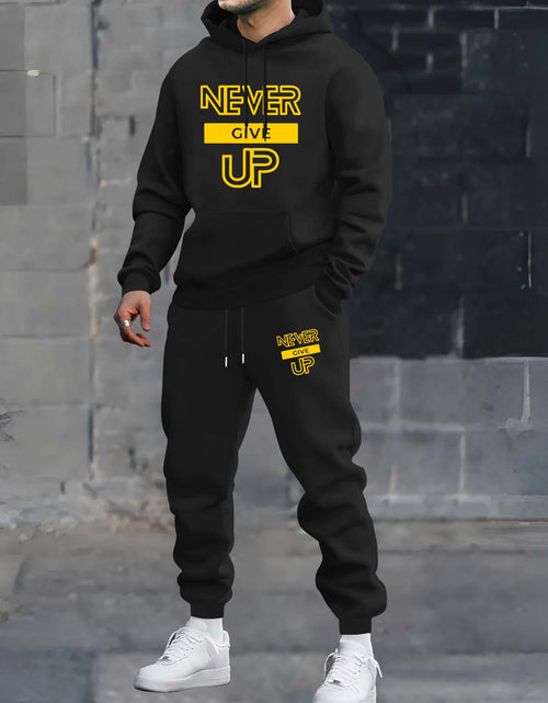 Men Fall/Winter Casual Hooded Sweat suit Set- Knit Polyester Tracksuit with Never Give Up Print, Regular Fit Hoodie and Sweatpants, Comfortable Athletic Fashion Outfit with Slight Stretch