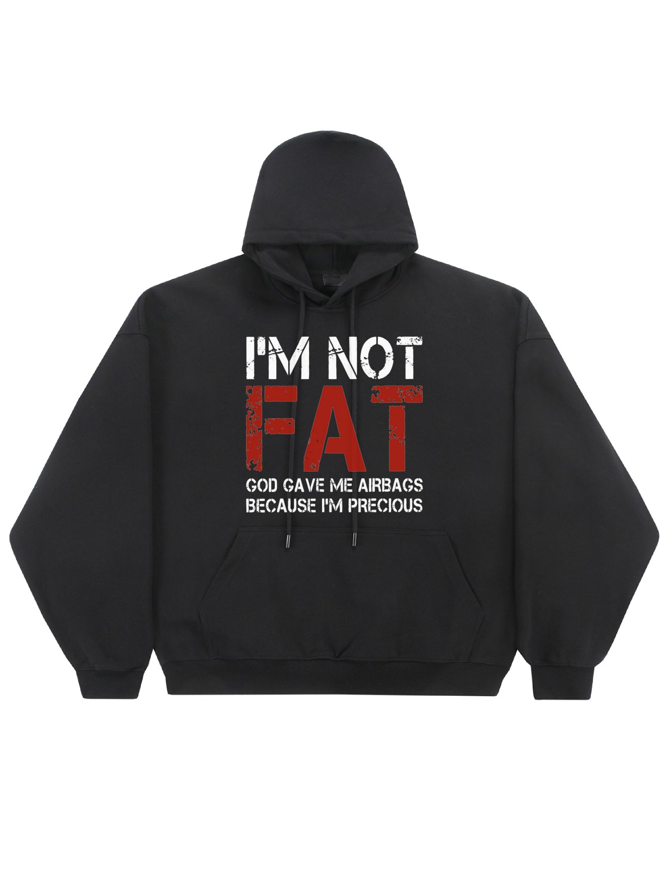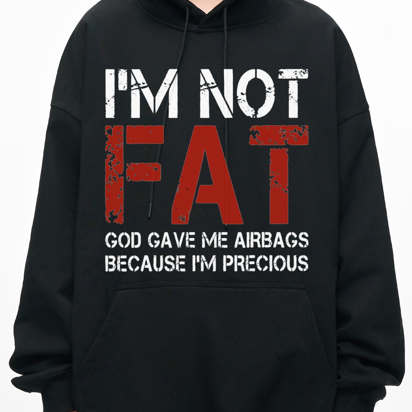 Men "I'm Not Fat" Graphic Hoodie - Casual Streetwear Sweatshirt with Bold Print, Red & White Design, Long Sleeves, Regular Fit for Fall/Winter, Sweater Hoodie