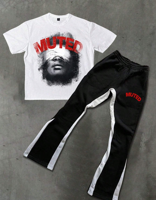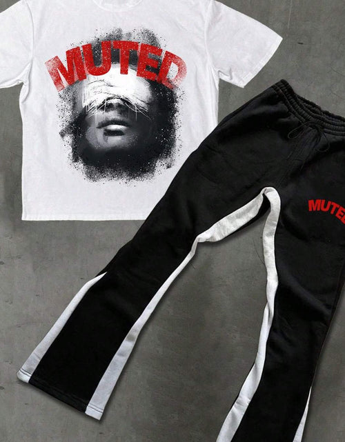Men "MUTED" Graphic T-Shirt & Joggers Set - Casual Summer Outfit with Bold Red Letter Print, Loose Fit, Breathable Fabric