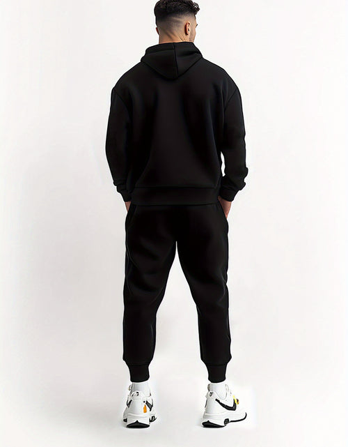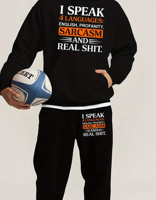 Men's Casual Printed Hoodie and Sweatpants Set- 100% Polyester Knit Fabric, Long Sleeve, Regular Fit, Slight Stretch, Fall Winter Collection, Trendy Graphic Sweatsuits with Drawstring