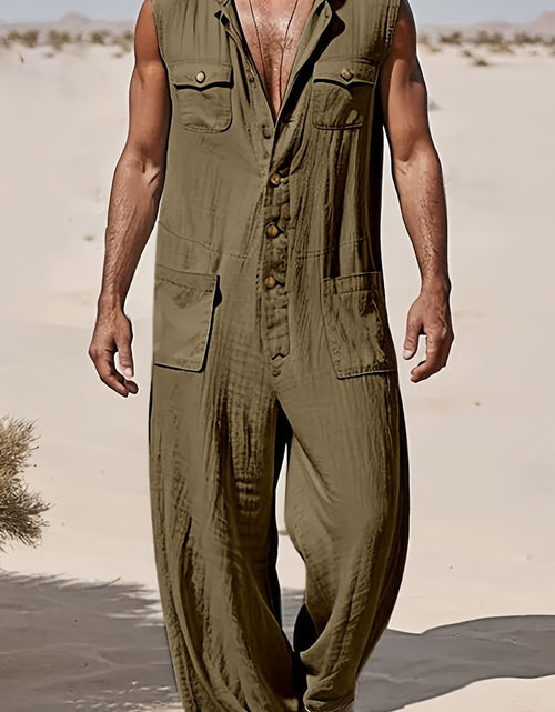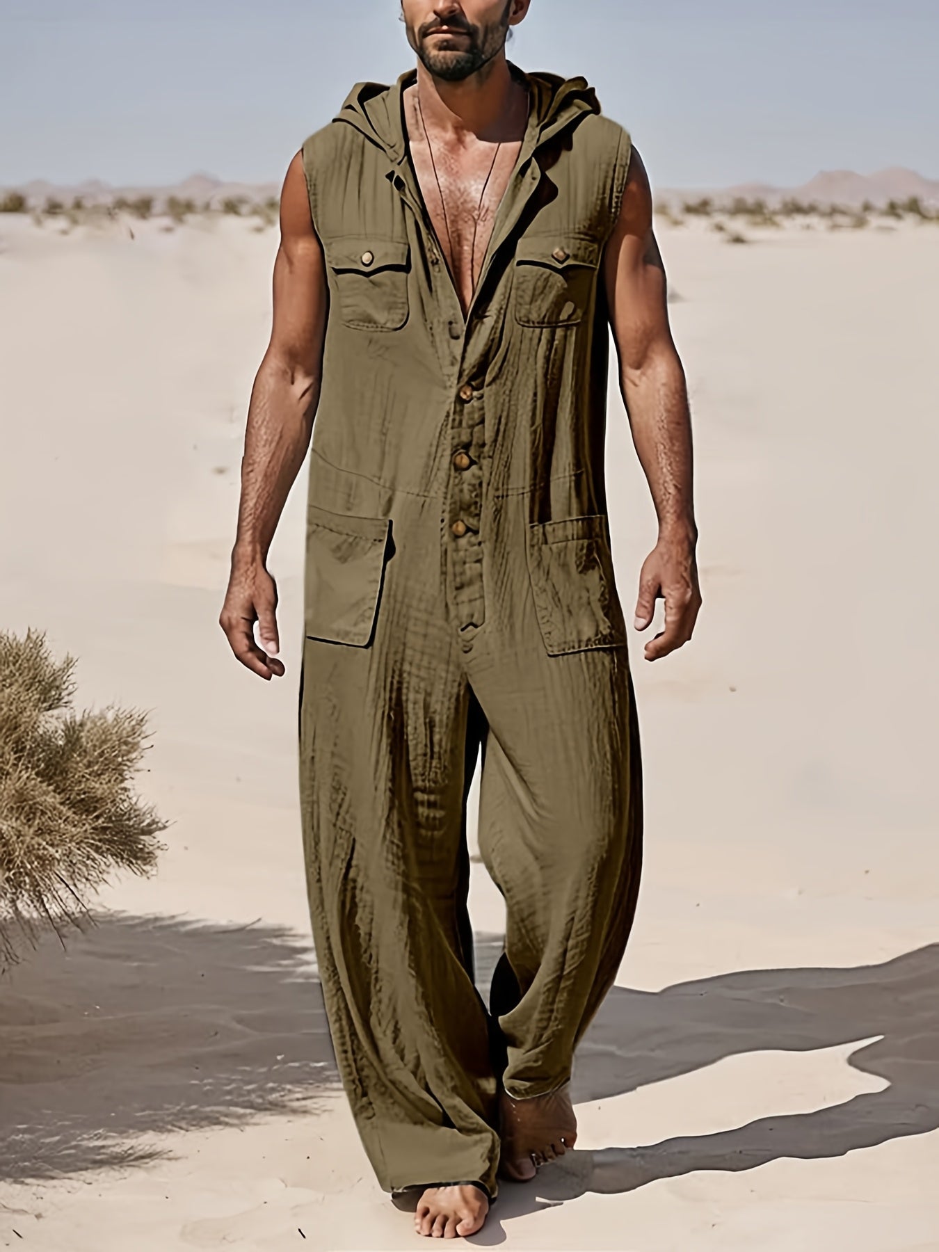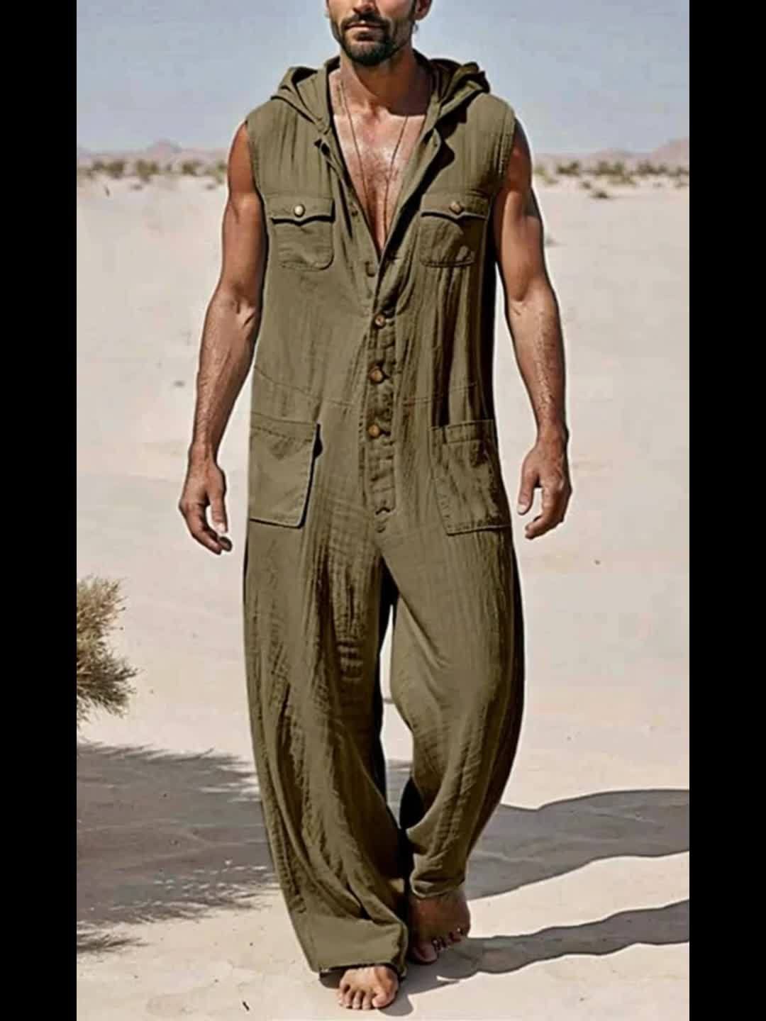 Mens Leisure Hoodies Jumpsuit Sleeveless Overalls With Pockets