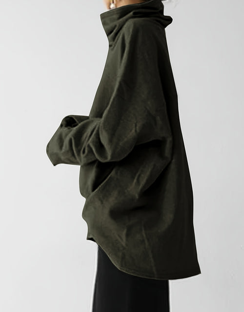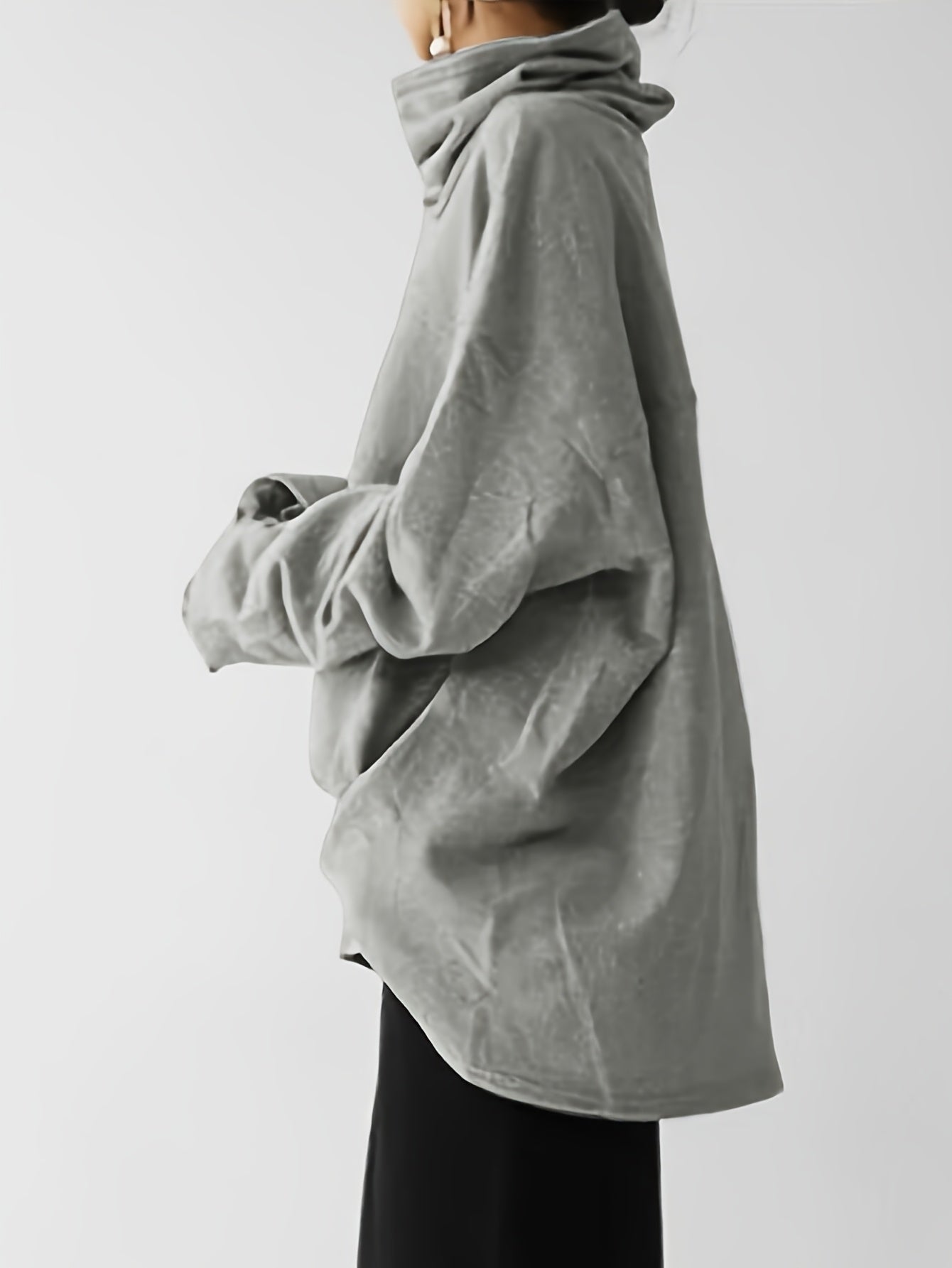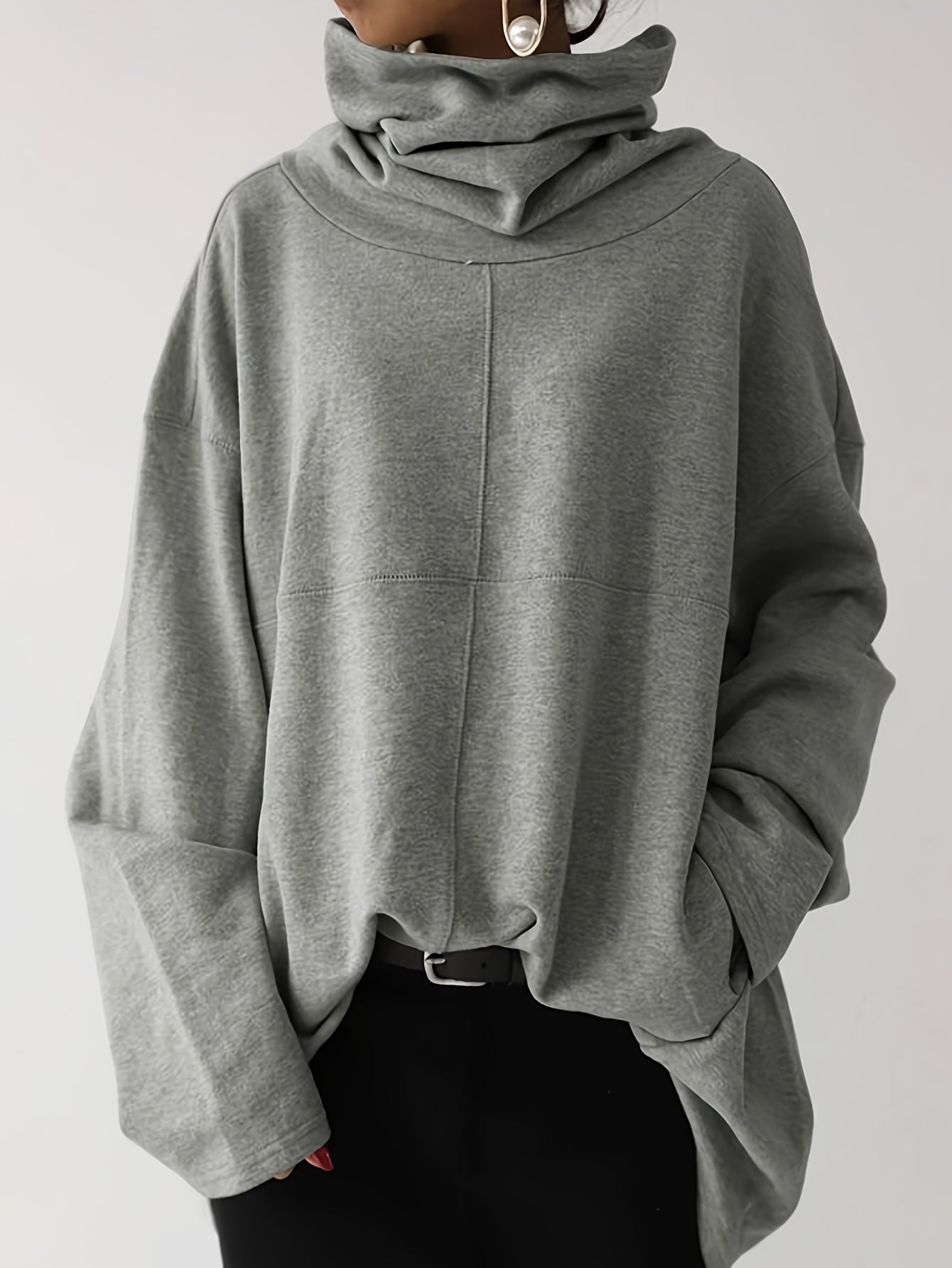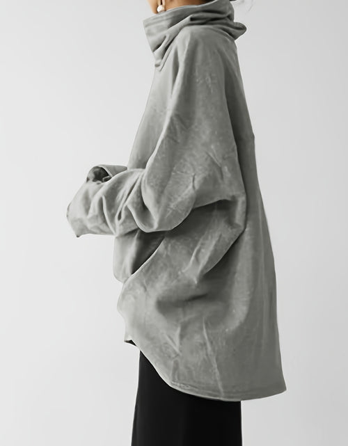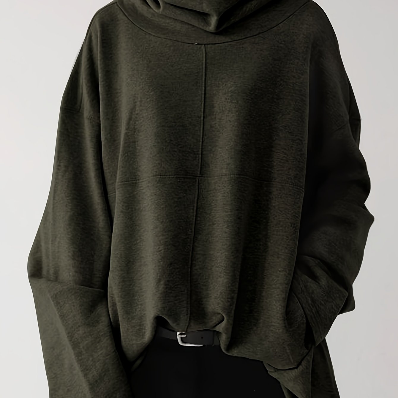 Plus Size, Women's Oversized Casual High Neck Pullover Hoodie with Front Pocket - Loose Fit Long Sleeve Solid Color Sweatshirt for Fall Winter, Plus Size Friendly
