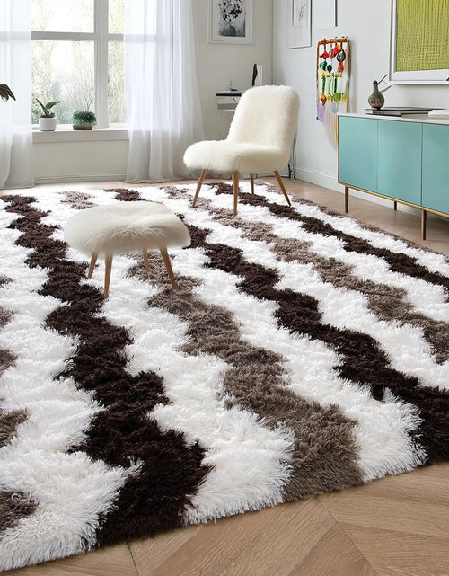 Soft Shaggy Rugs Plush Area Rugs for Living Room Bedroom Fluffy Carpets Home Decor,5x8ft,Stripe Brown