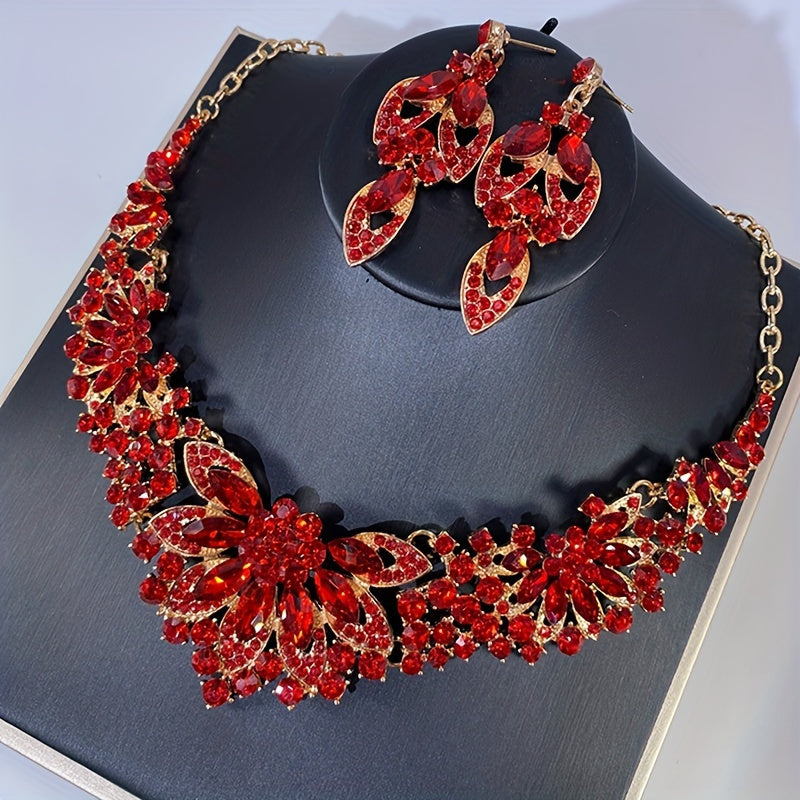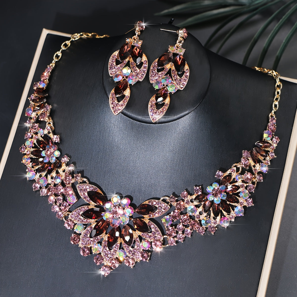 Vintage Inspired Exaggerated Bridal Jewelry Set - Wedding Necklace Earrings Set for Brides - Luxury Accents, Dangling Drops, and Elegant Design