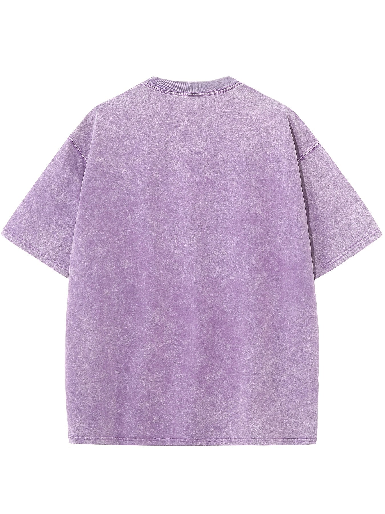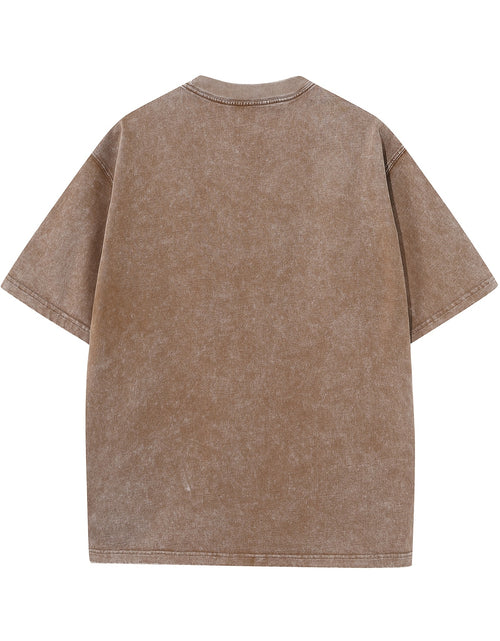 Washed Cotton Batik T-shirt High-quality Thickened Washed Cotton 220g Batik Washed Off-shoulder Short Sleeves Young Men's Pattern Printed Casual T-shirt