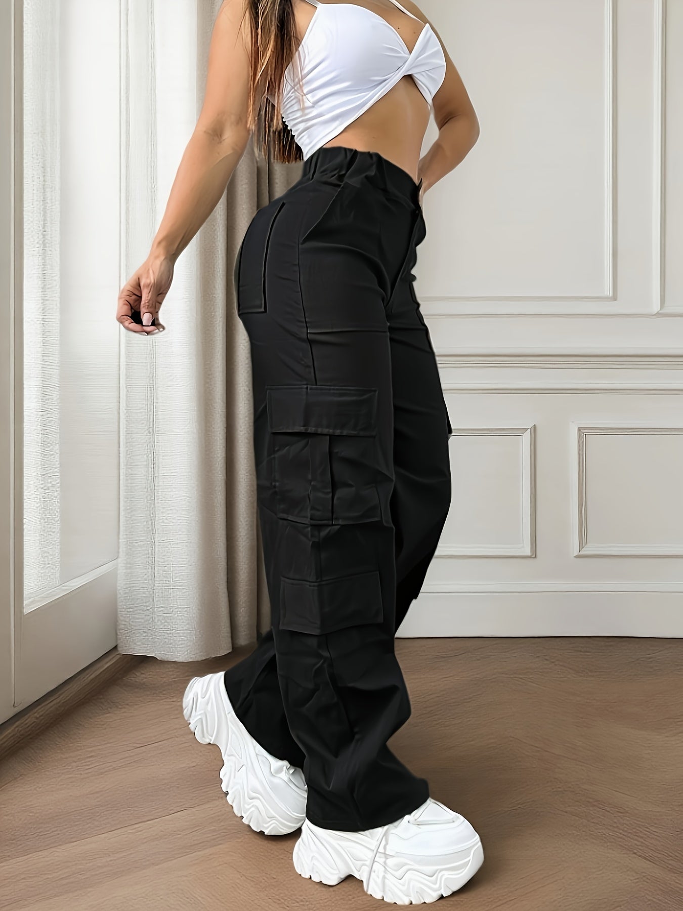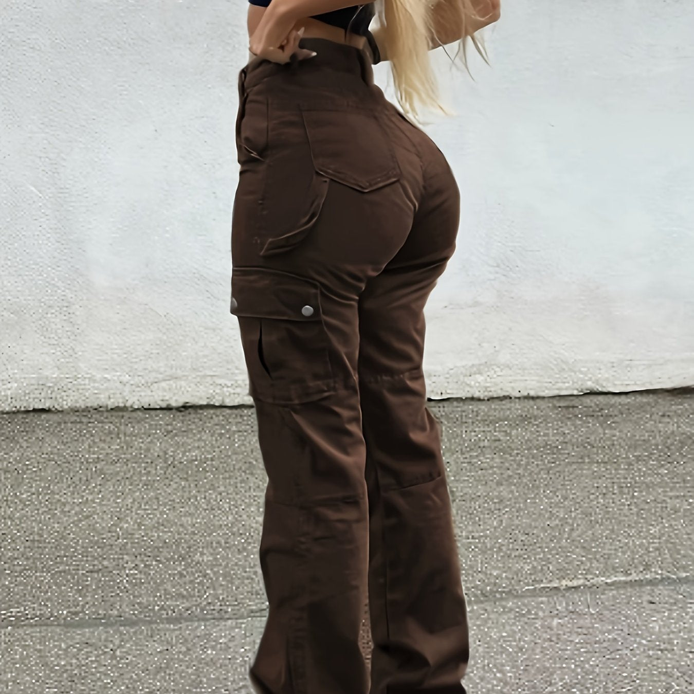 Women High-Waisted Stretch Pants with Multiple Pockets - Casual & Versatile, Butt-Lifting Design, Spring/Summer/Fall, High Waisted Pants