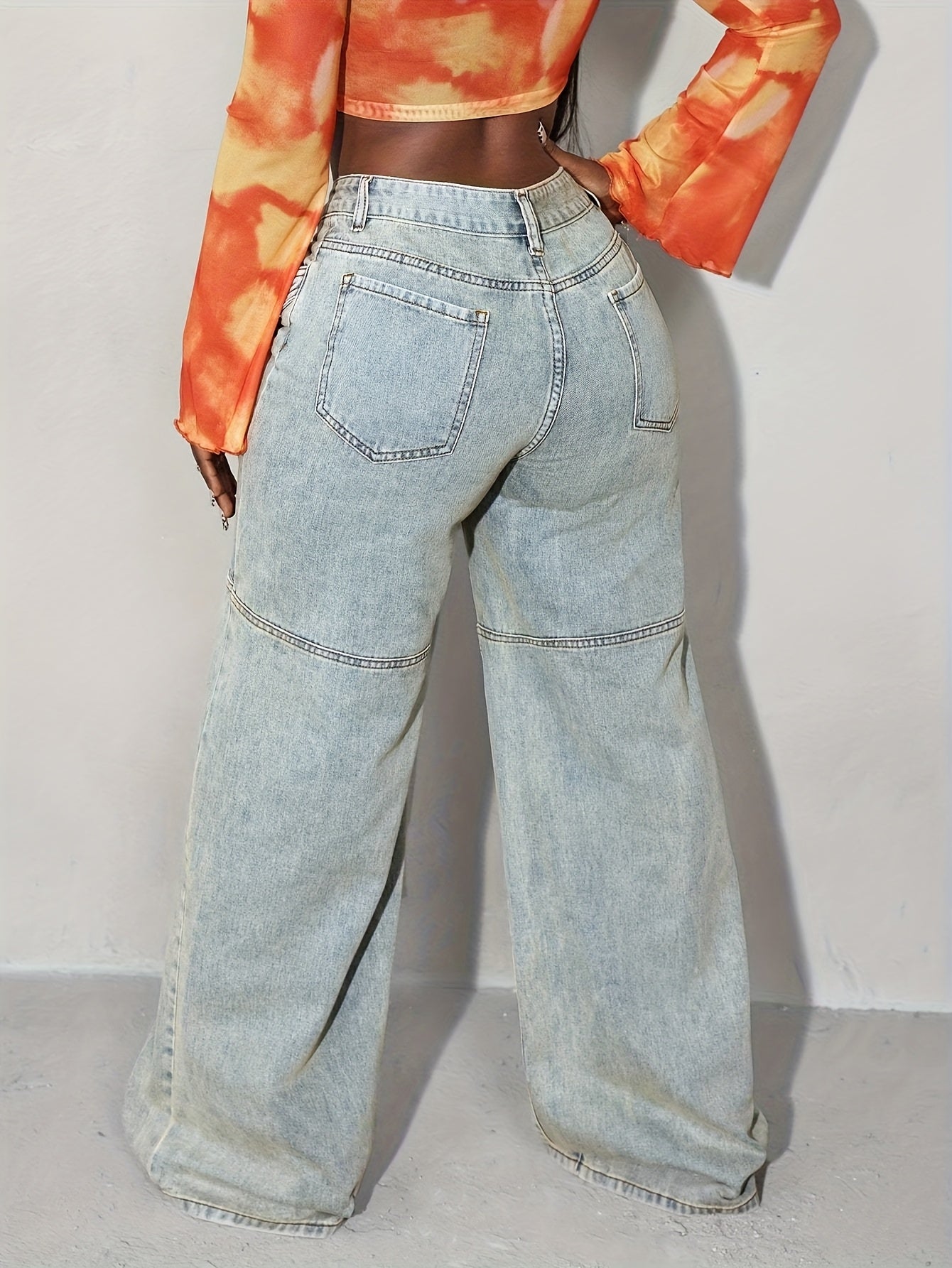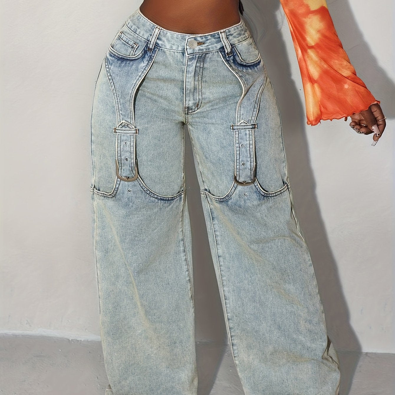 Women Vintage Cargo Jeans - Slim Fit High-Quality Denim with Multiple Pockets, Button Details & Built-In Zipper Closure, Machine Washable All-Season Casual Pants, Casual Attire, Relaxed Fit Pants, Durable Denim Fabric, Functi