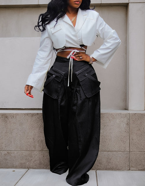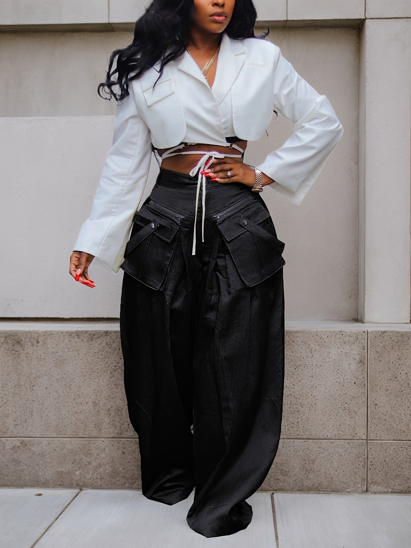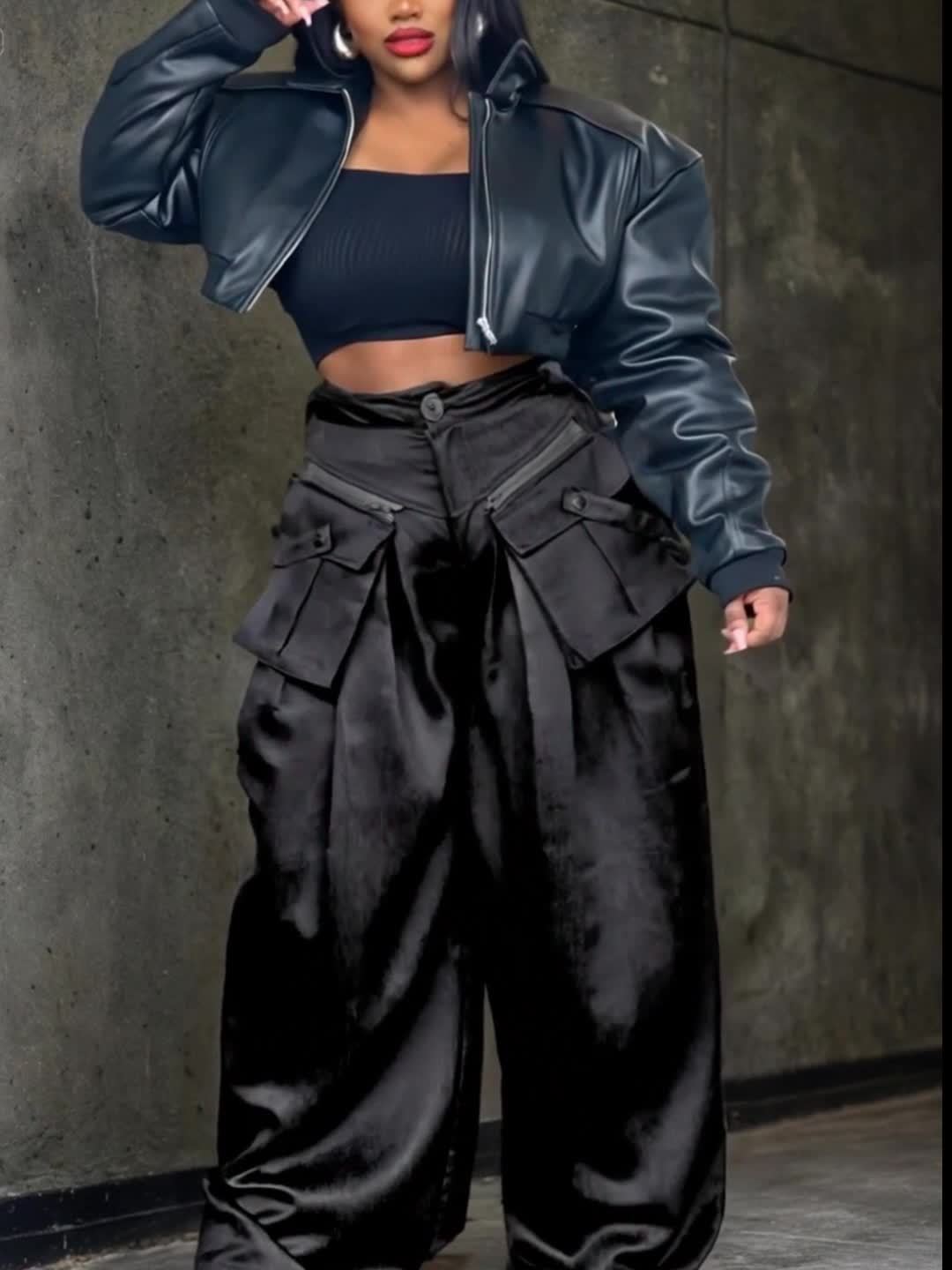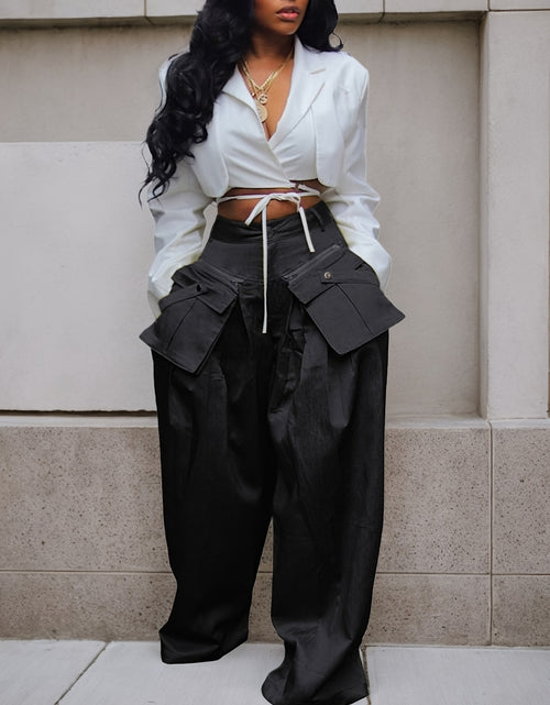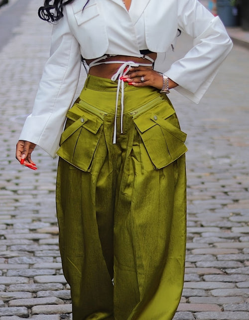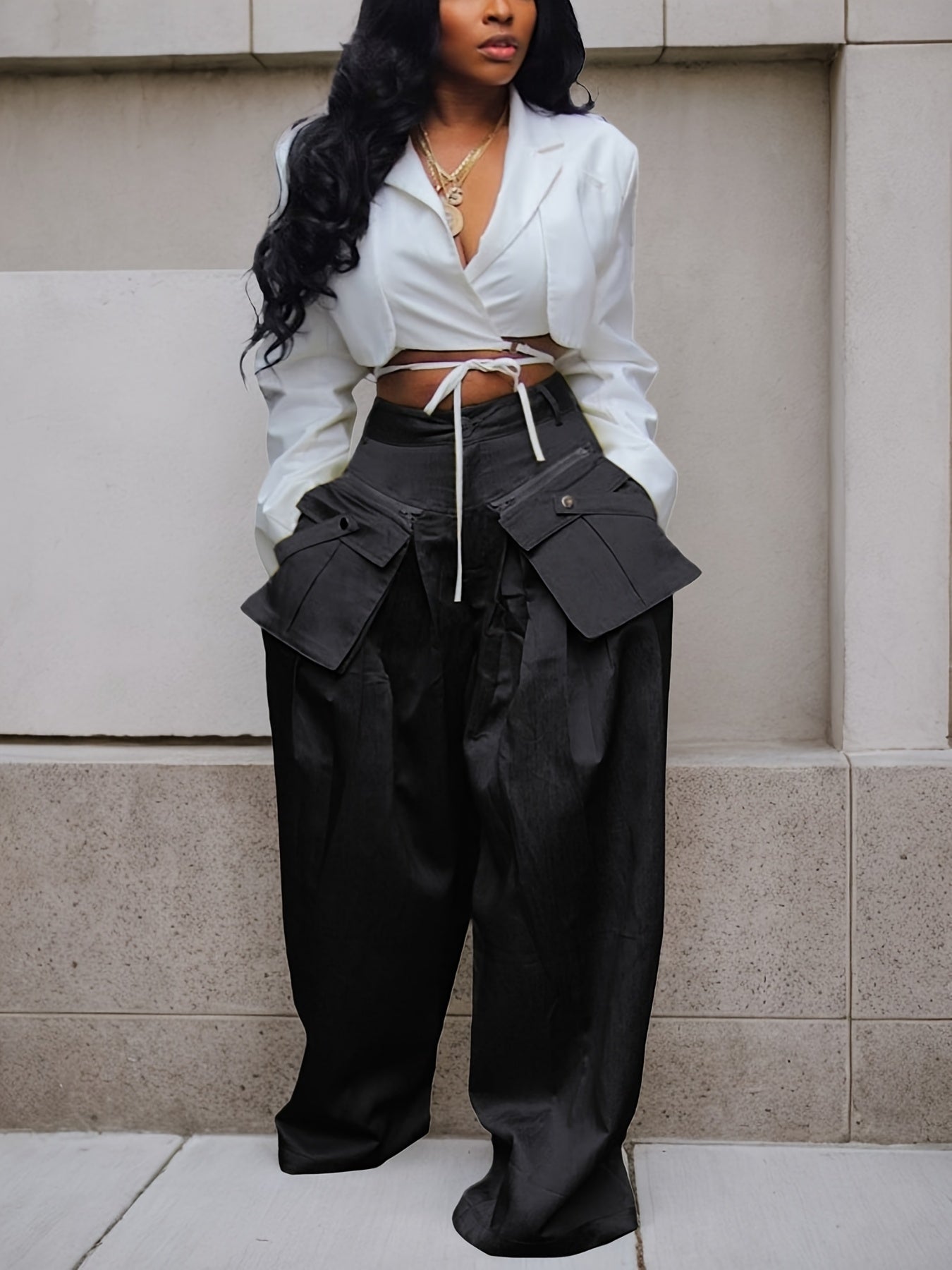 Women's High-Waisted Wide Leg Cargo Pants with Detachable 3D Pockets & Side Zipper Pockets - Lightweight Stretch Polyester-Spandex Blend, Loose Fit Solid Color Trousers