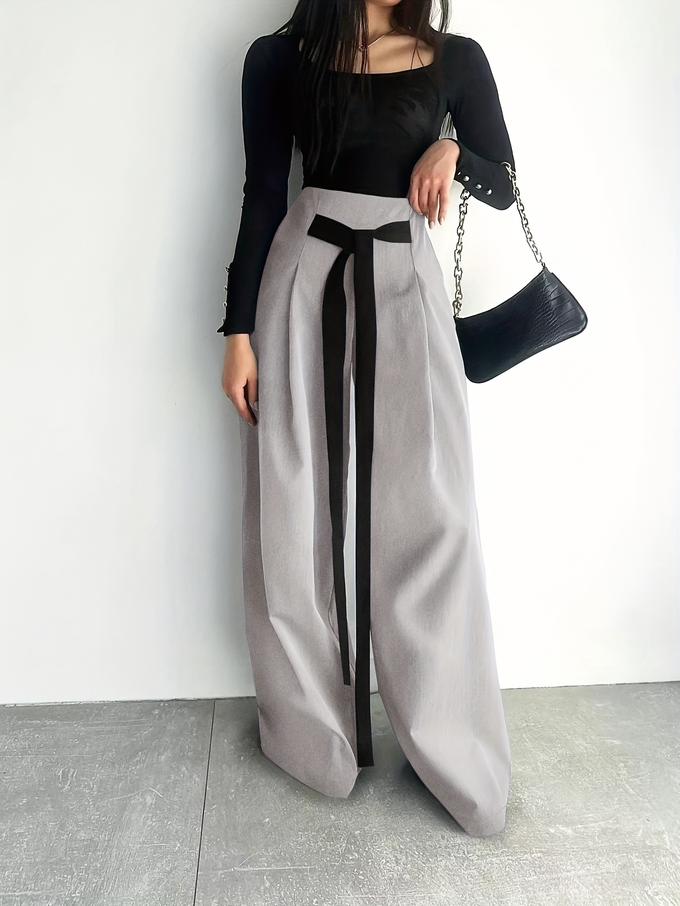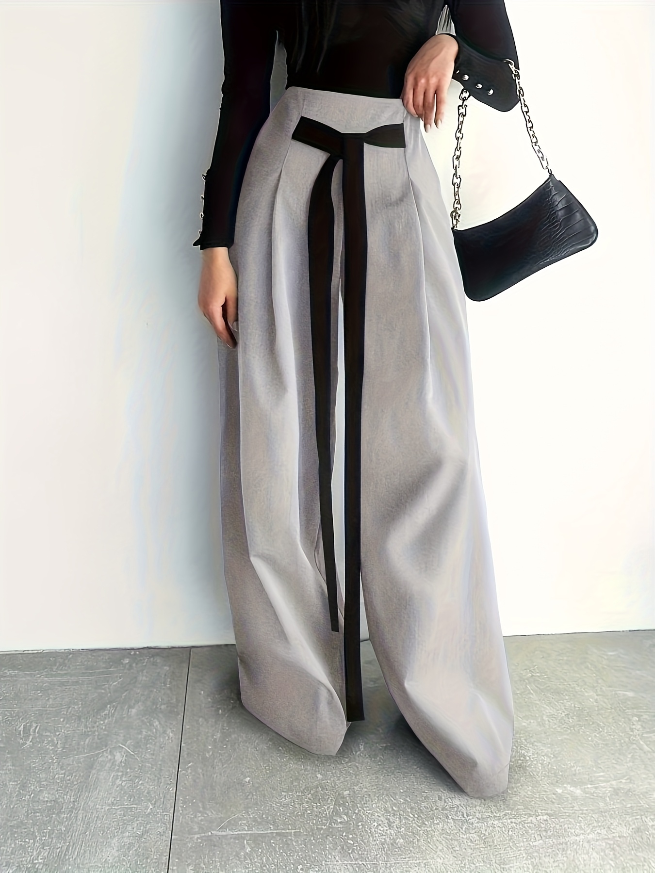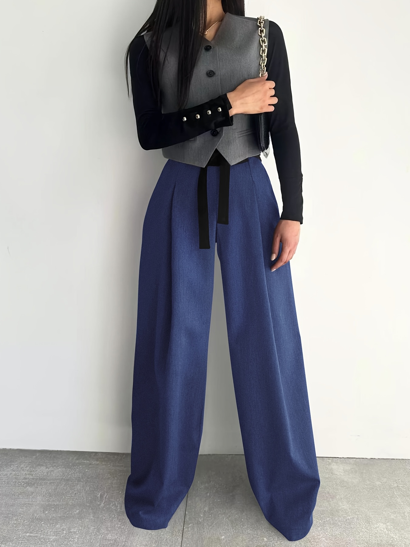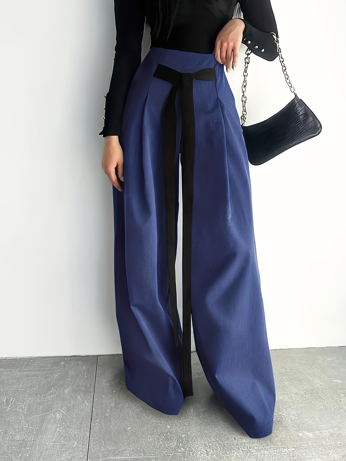 Women's High-Waisted Wide Leg Pants with Adjustable Tie Waist & Pockets - Casual to Business Casual Loose Fit Trousers, Solid Color All-Season Machine Washable, Business Casual Trousers | Pleated Pants | Functional Pockets Tr