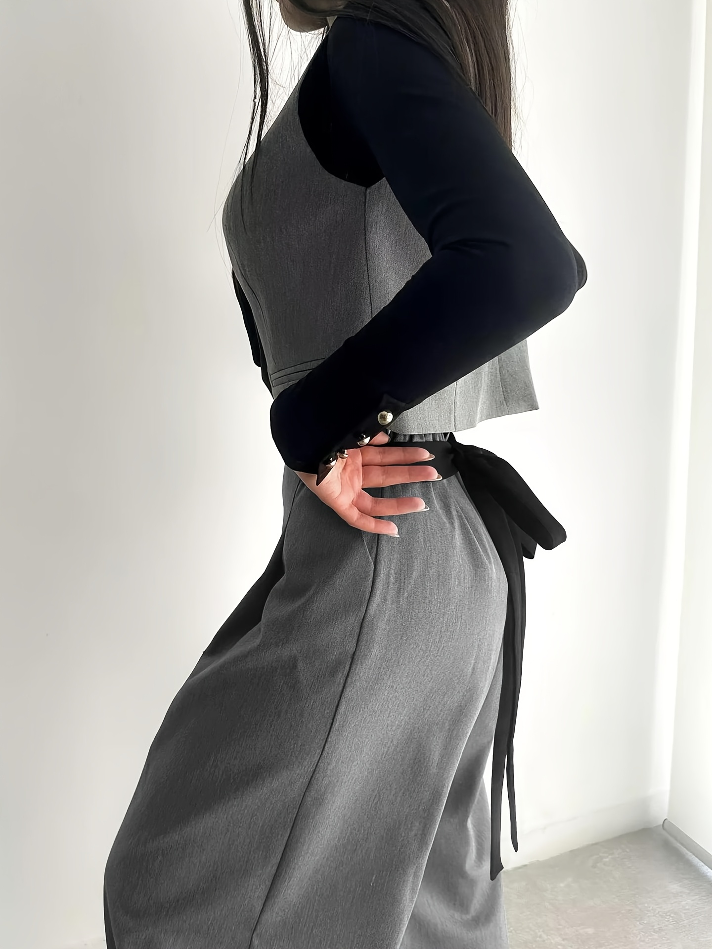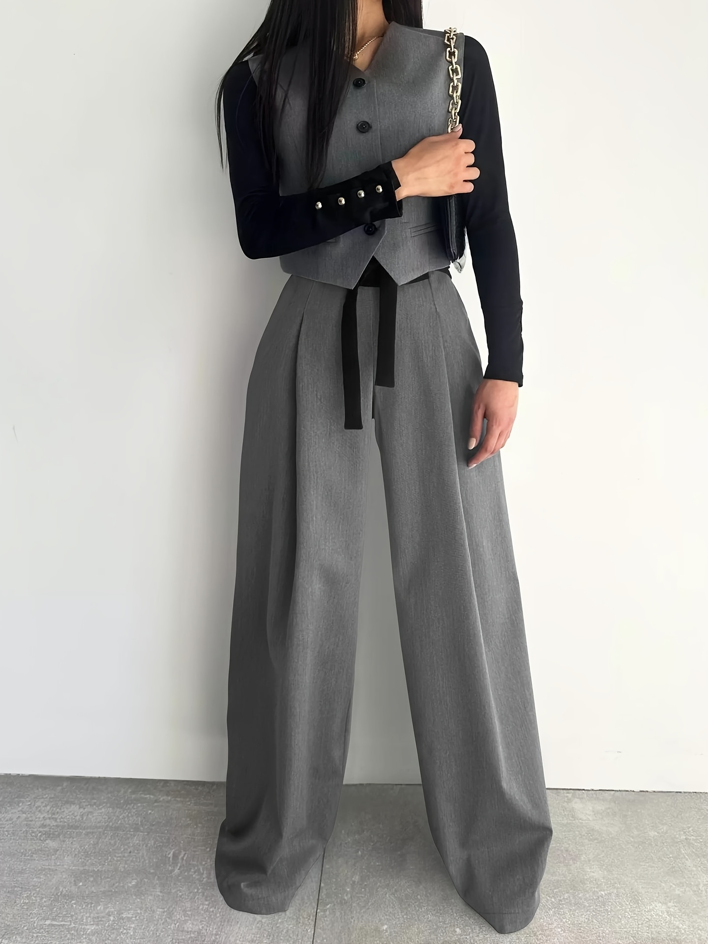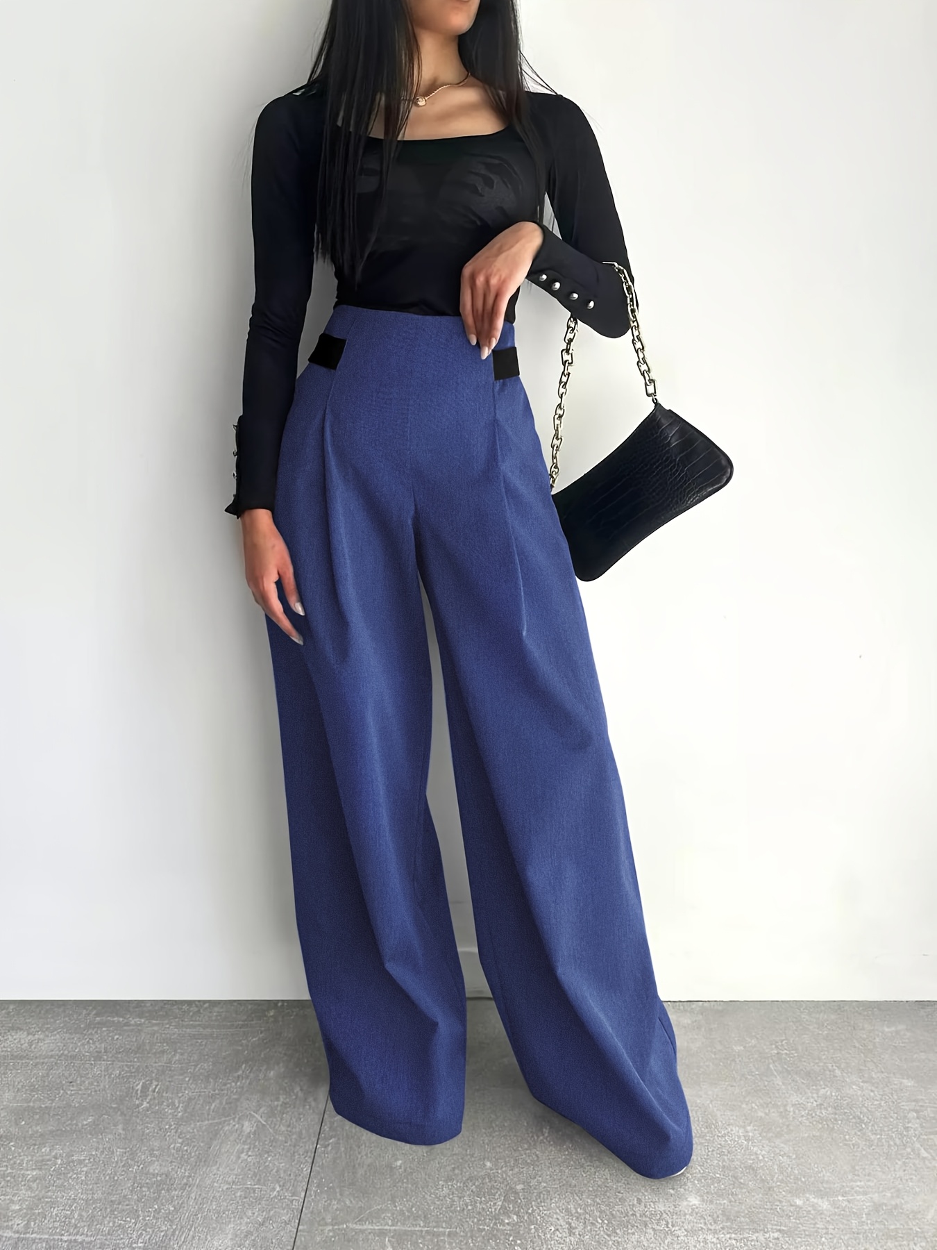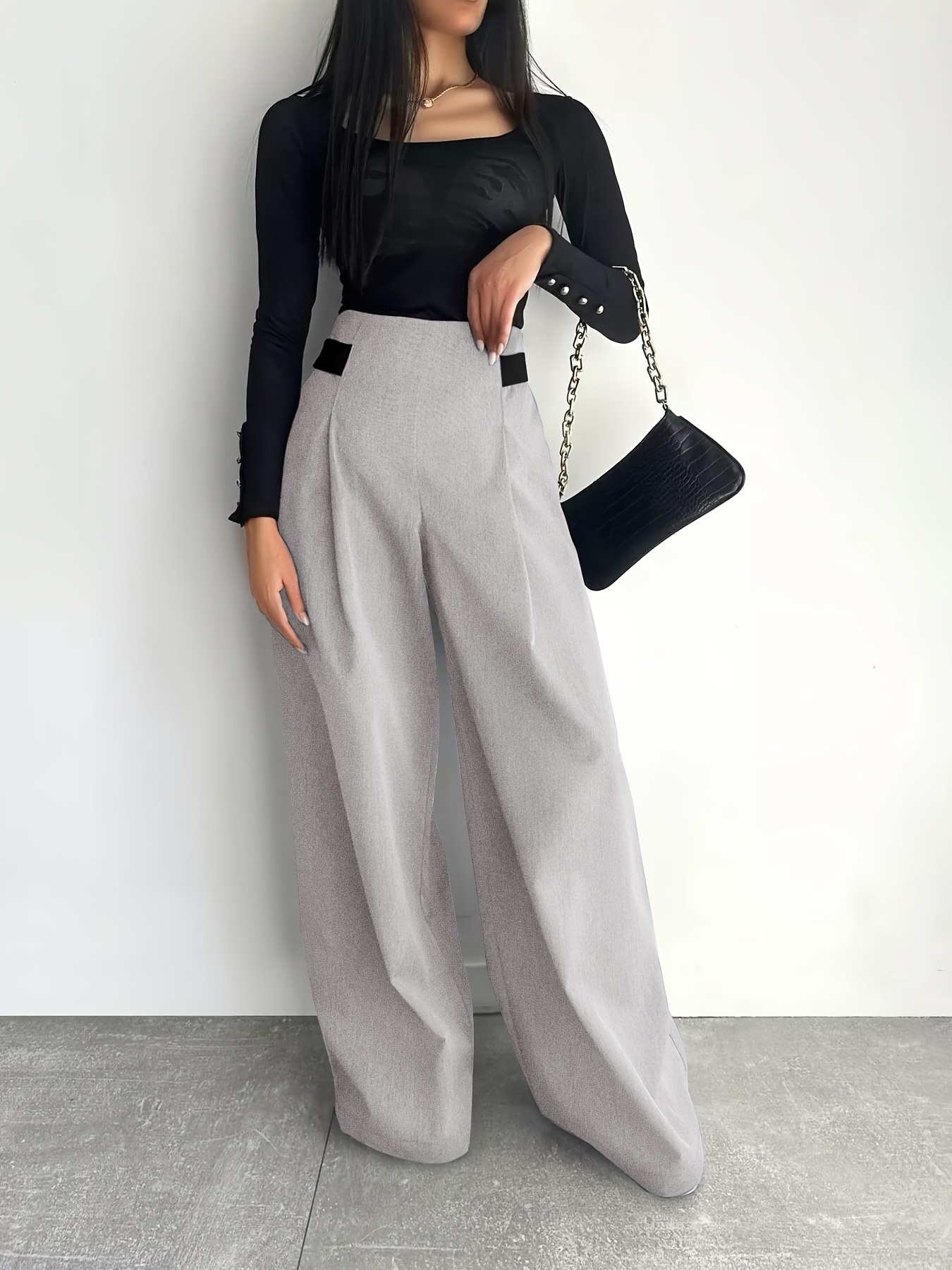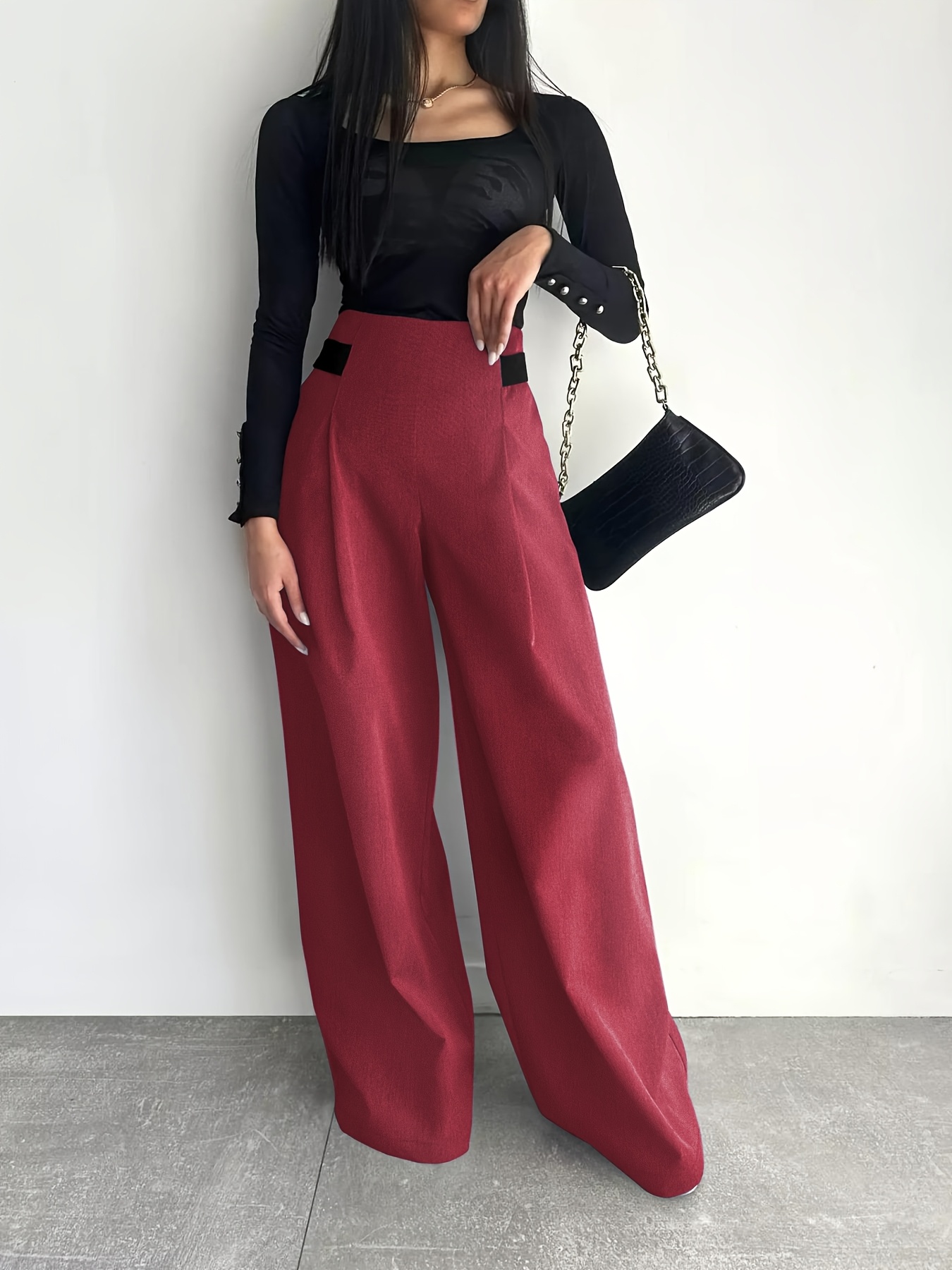 Women's High-Waisted Wide Leg Pants with Adjustable Tie Waist & Pockets - Casual to Business Casual Loose Fit Trousers, Solid Color All-Season Machine Washable, Business Casual Trousers | Pleated Pants | Functional Pockets Tr