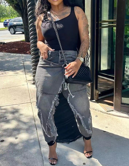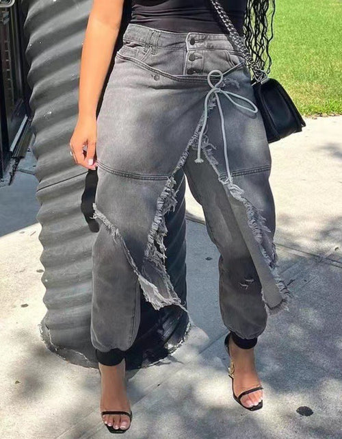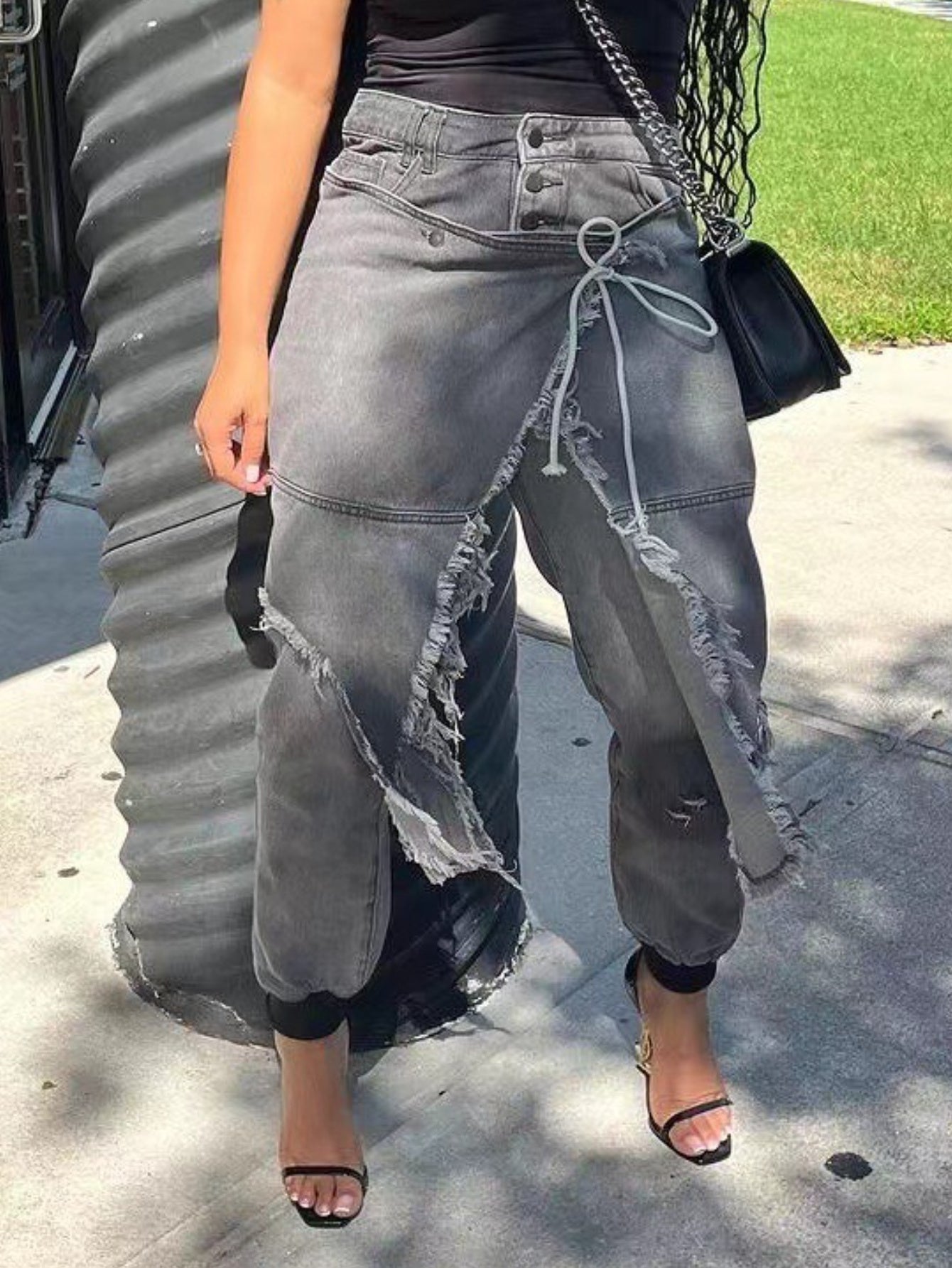 Women's Jeans - High-Waisted Stretch Leg Pants Very Unique Design with Lace-Up Closure, - Fall 2025 Streetwear Fashion